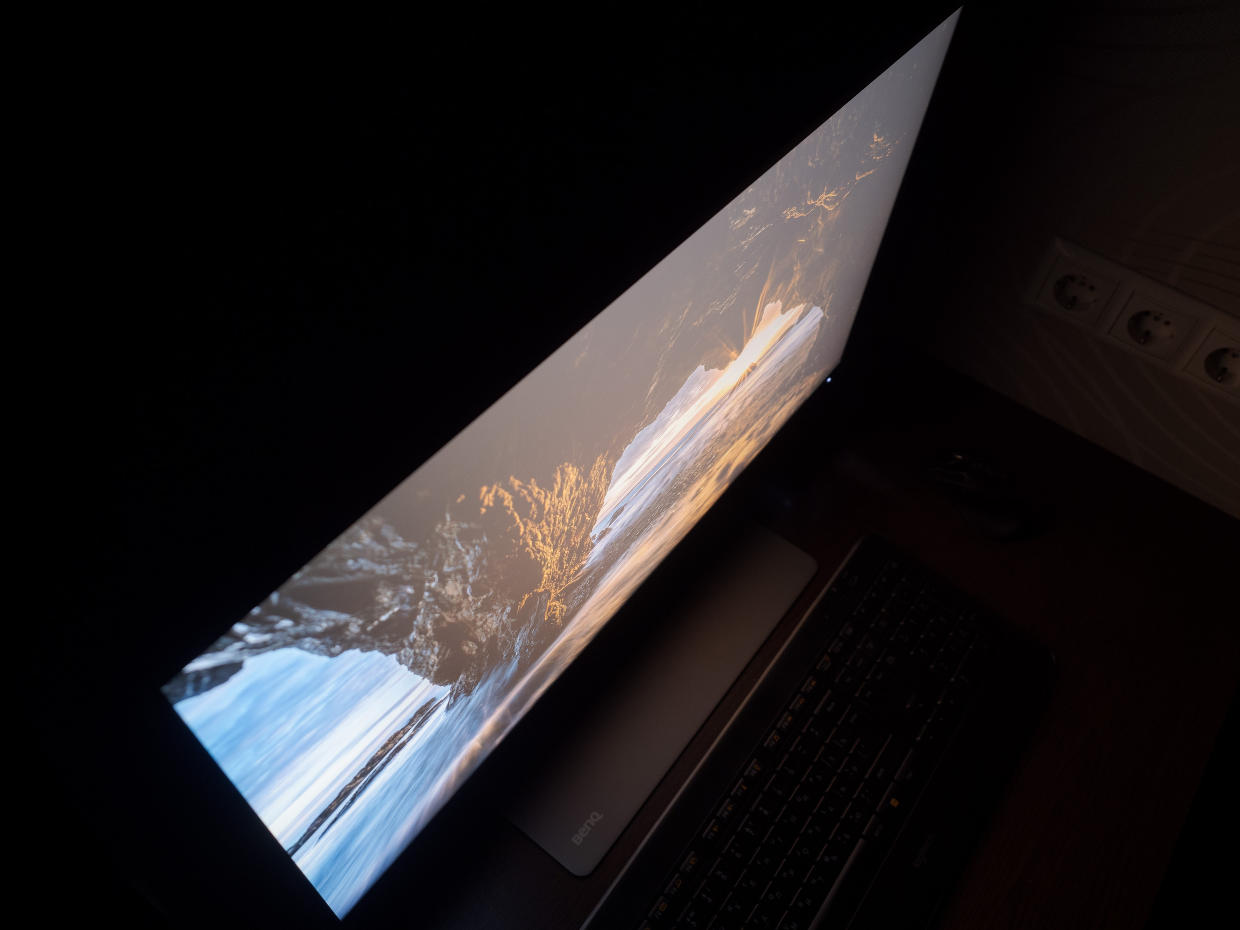 Угловой Glow-эффект, в прямом понимании этого термина, проявляет себя на цветных изображениях при взгляде под большим углом, стоя над монитором. Однако, таких резких изменений картинки, как в случае с *VA матрицами и уж тем более TN+Film, вы здесь не увидите. По фотографиям можно наблюдать появление пелены на большей части изображения с «тёплым» паразитным оттенком (с красным подоттенком), что свойственно многим решениям с расширенным цветовым охватом.
