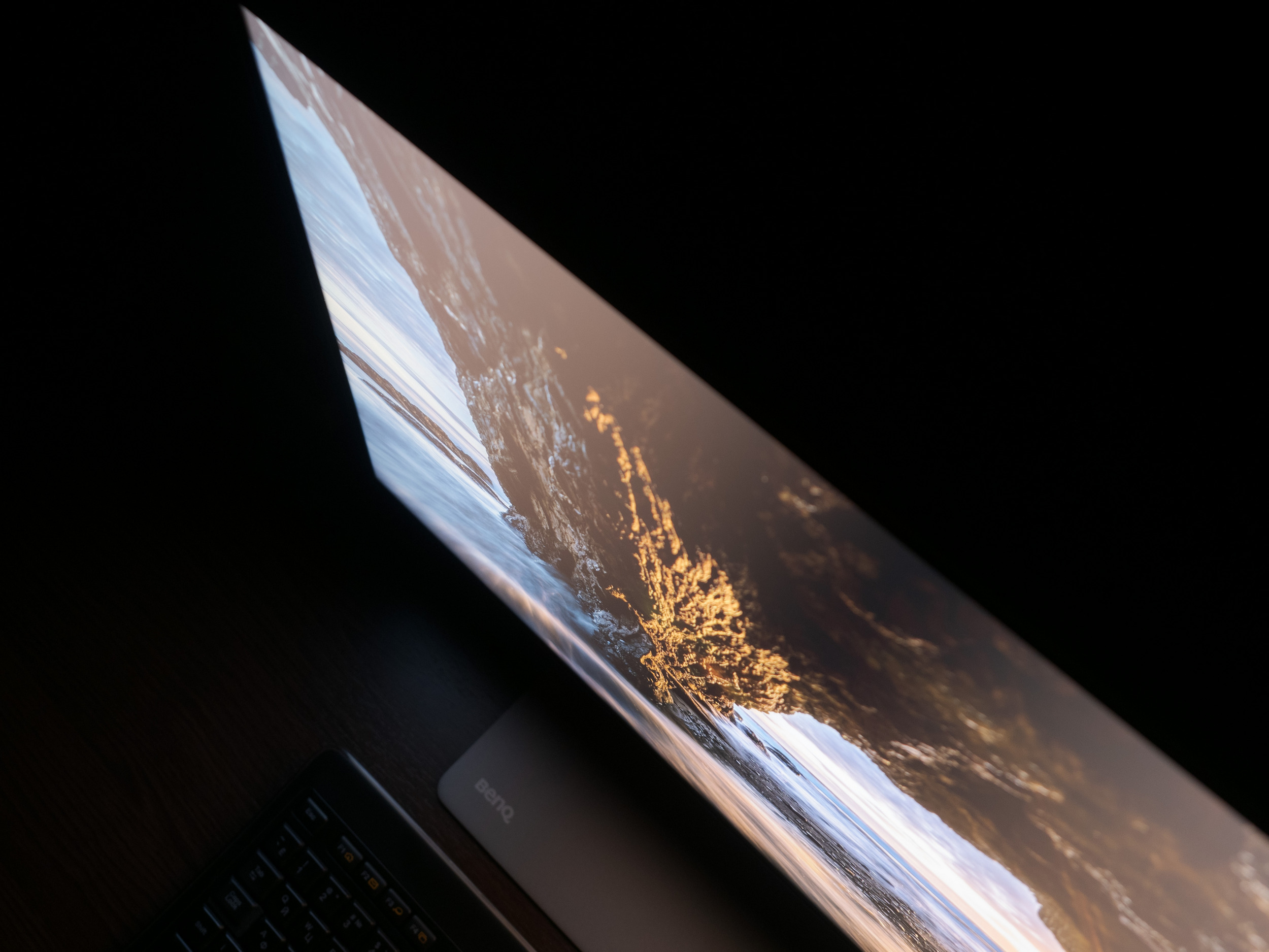 В новинке BenQ, в сравнении с предшественником, применён современный «безрамочный» дизайн с минимальными внутренними рамками со всех четырёх сторон. Блока с датчиками внешней освещённости и присутствия тут нет, но его нет и в 32-дюймовой модели BenQ нового поколения.