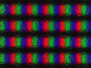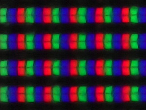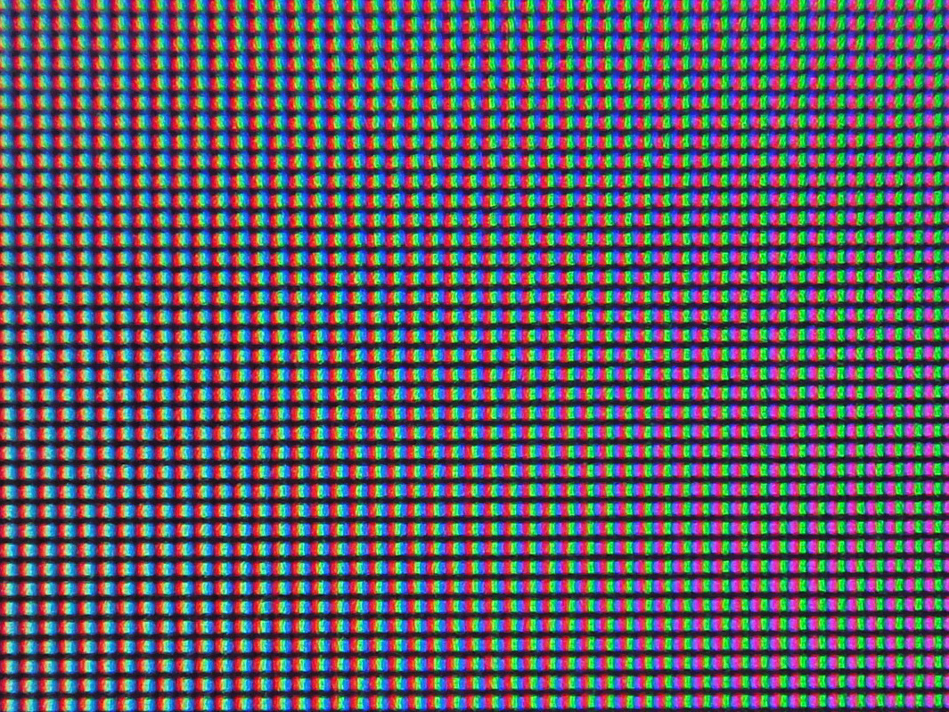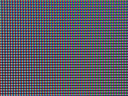 По макрофотографиям представленным выше вы можете увидеть пиксельную структуру и защитную плёнку – снимки с разной областью фокусировки одного и того же сегмента изображения.