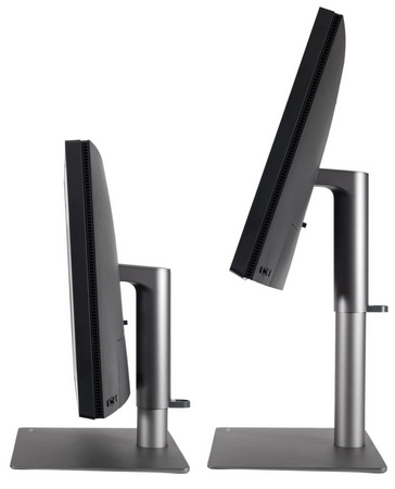 Эргономика подставки удовлетворит любые запросы: доступно изменение наклона и высоты, а также поворот корпуса. В случае с PD2725U можно изменить наклон панели от -5 до +20 градусов, осуществить поворот на 30 градусов вправо-влево, изменить высоту в пределах 150 мм. Панель можно опустить почти до поверхности подставки и это большой плюс!
