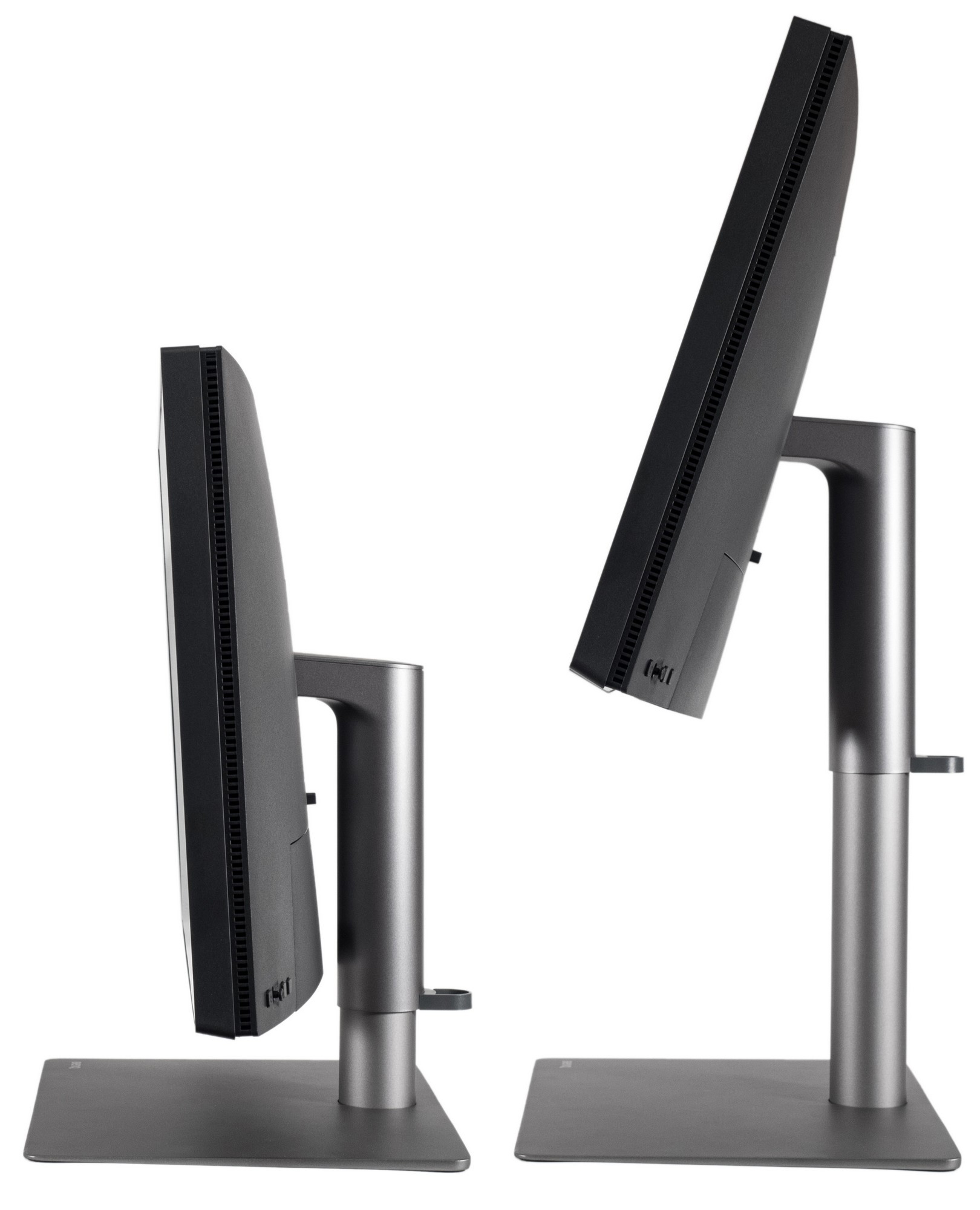 Присутствует возможность переворота в портретный режим (Pivot). Центровка корпуса из-за этого не пострадала, люфт относительно горизонтальной оси не больше одного градуса в обе стороны.