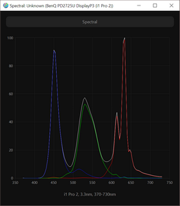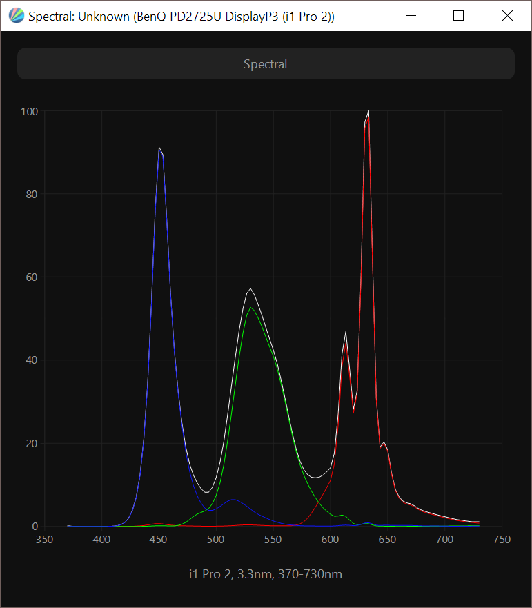 В мониторе PD2725U установлена IPS-подобная матрица стандарта 4К с продвинутым вариантом W-LED подсветки, где используется дополнительный слой напыления для модификации спектра подсветки и небольшого расширения цветового охвата, что является, безусловно, побочным (и одновременно полезным для определённых задач) эффектом данных изменений. Проверим ее цветовой охват на примере новинки от BenQ: