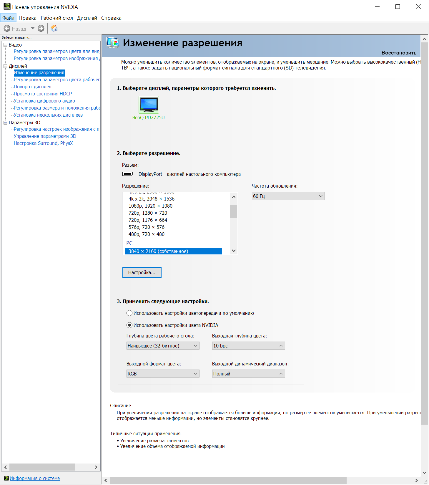 Последняя цифра говорит о том, что монитор порадует вас высокой чёткостью картинки на экране и создаст очевидную необходимость в использовании достаточно проблемной системы масштабирования ОС Windows для ПО без внедрённой поддержки HiDPI-дисплеев. Впрочем, обе особенности относятся не только к PD2725U, но и ко всем его конкурентам, а поэтому если вы всё же готовы к таким изменениям в своей жизни, то просто забудьте об этом и смело покупайте понравившуюся вам модель.