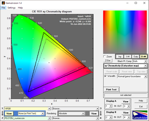 При ручной настройке и дальнейшем профилировании в пользовательском режиме мы также не увидели значимых изменений, но слегка прибавить цифры цветового охвата всё же удалось.