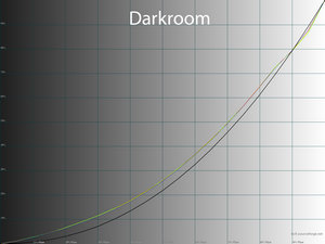 Два следующих режима абсолютно не похожи друг на друга. Уже изученный M-Book с очевидно неверно выставленной гаммой и Darkroom нацеленный на снижение нагрузки на глаза, в котором производитель сильнейшим образом снизил контрастность картинки (за это ему плюс в карму), что естественным образом снизили итоговую точность цветопередачи. Соответственно за M-Book мы ставим «двойку», а за режим Тёмной комнаты выставляем «отлично» и выписываем благодарность.