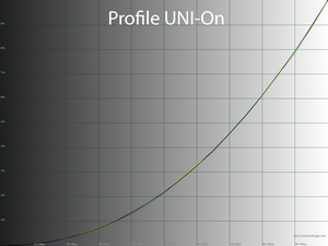 Учитывая активированную по умолчанию функцию улучшения равномерности подсветки яркость монитора даже при почти 100 % оказывается на уровне не превышающем 254-266 нит, а в режимах эмуляции пространств sRGB/Rec.709 по умолчанию оказывается на уровне 116-174 нит. Коэффициент контрастности из-за этого также снижен и не превышает 800:1, хотя матрица способна на большее (почти 1200:1 после дезактивации соответствующей функции).