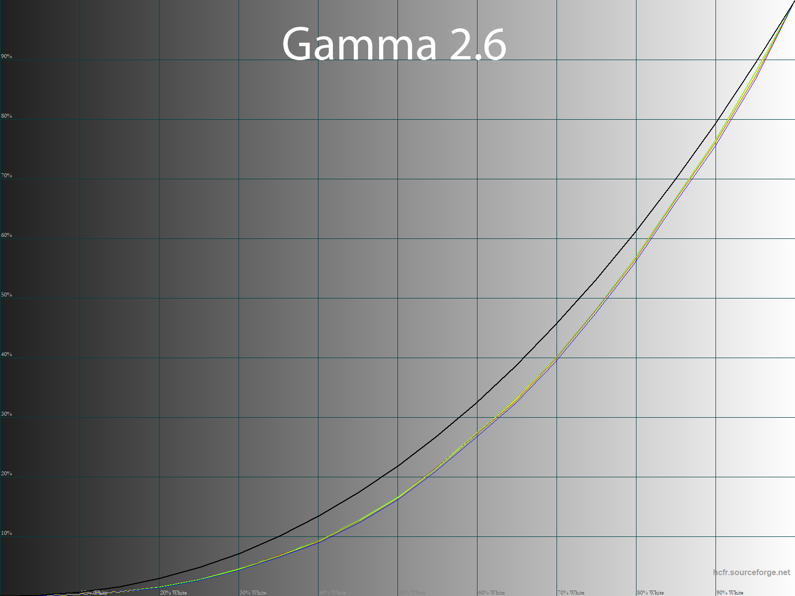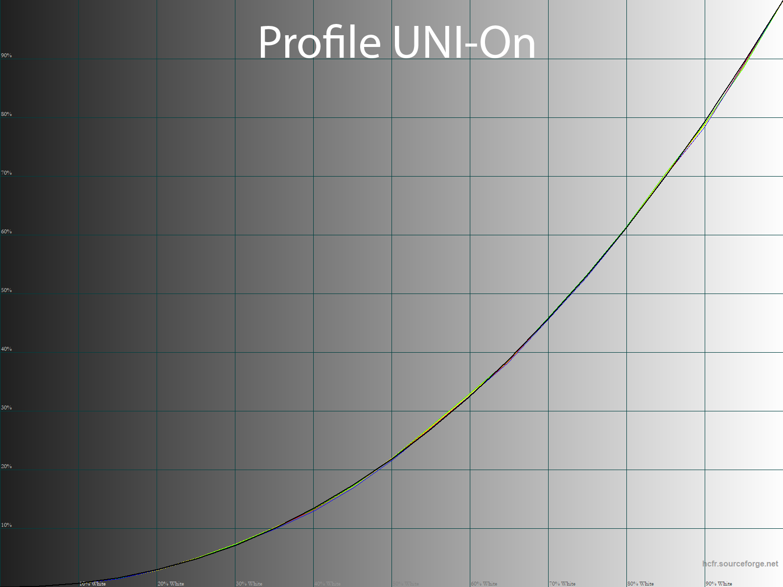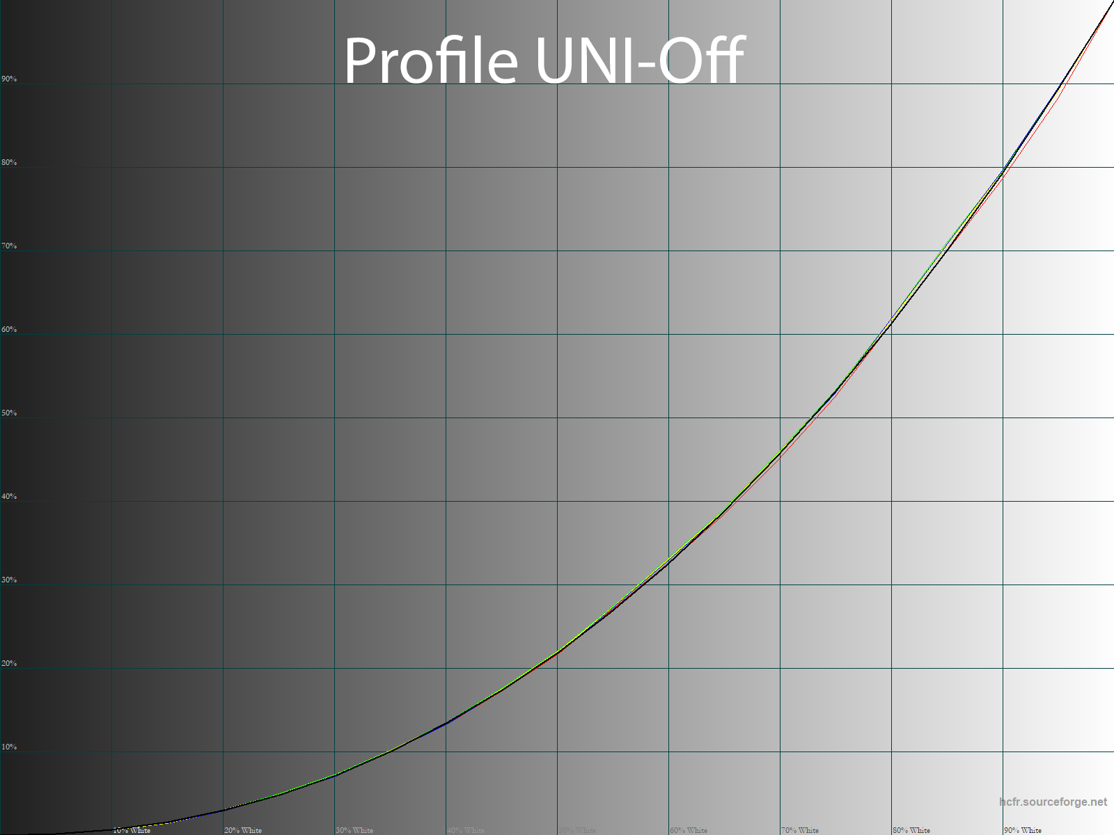 С помощью программы HCFR Colormeter и “откалиброванного” колориметра X-Rite Display Pro нами были изучены гамма-кривые во всех рассмотренных выше “режимах”, как изначально предустановленных, так и специально “разработанных”. Кроме того, по произведённым измерениям можно оценить расхождение серого клина (точек чёрно-белого градиента) на CIE диаграмме и сделать выводы о преобладании того или иного паразитного оттенка, либо его таковом отсутствии.
