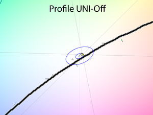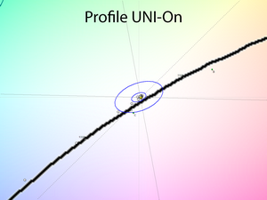 Ручные правки позволили снизить яркость до нужного уровня и установить точку белого близкую к 6500K с минимальными отклонениями. После применения созданного информационного профиля общая точность цветопередачи возросла до уровня 0,29 единицы DeltaE94 в среднем и 1,45 в максимуме – результат, который заслуживает установленная матрица и монитор такого класса. В дальнейшем можно дезактивировать систему компенсации неравномерности подсветки и без каких-либо дополнительных правок получить схожий уровень точности цветопередачи. Супер стабильность и повышенный коэффициент контрастности вкупе с падением равномерности подсветки. Что выбрать из этих двух вариантов – решать только вам!