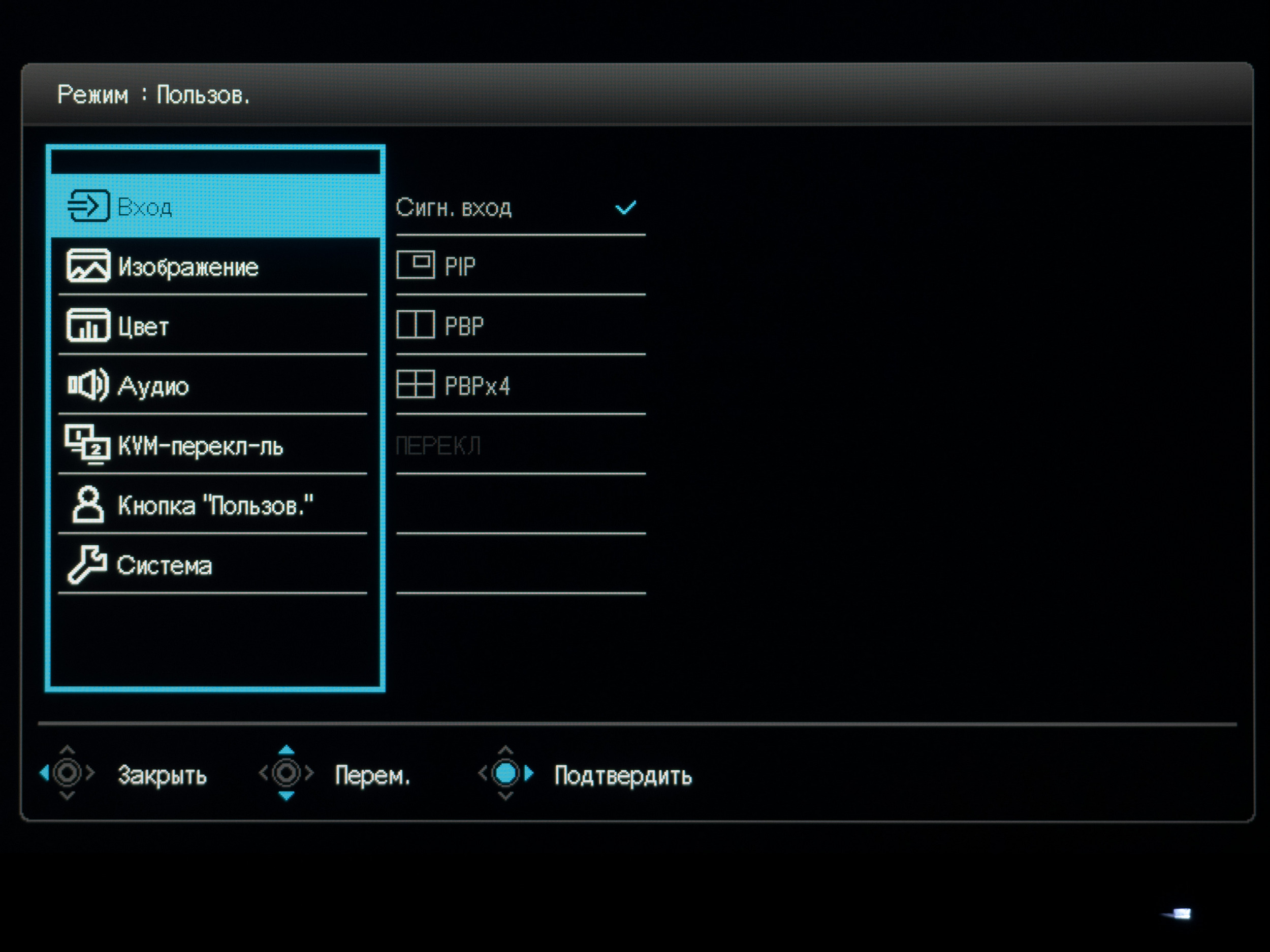 Первый позволяет выбрать источник сигнала и настроить функции PiP/PbP. Настроек много, вариантов использования тоже.