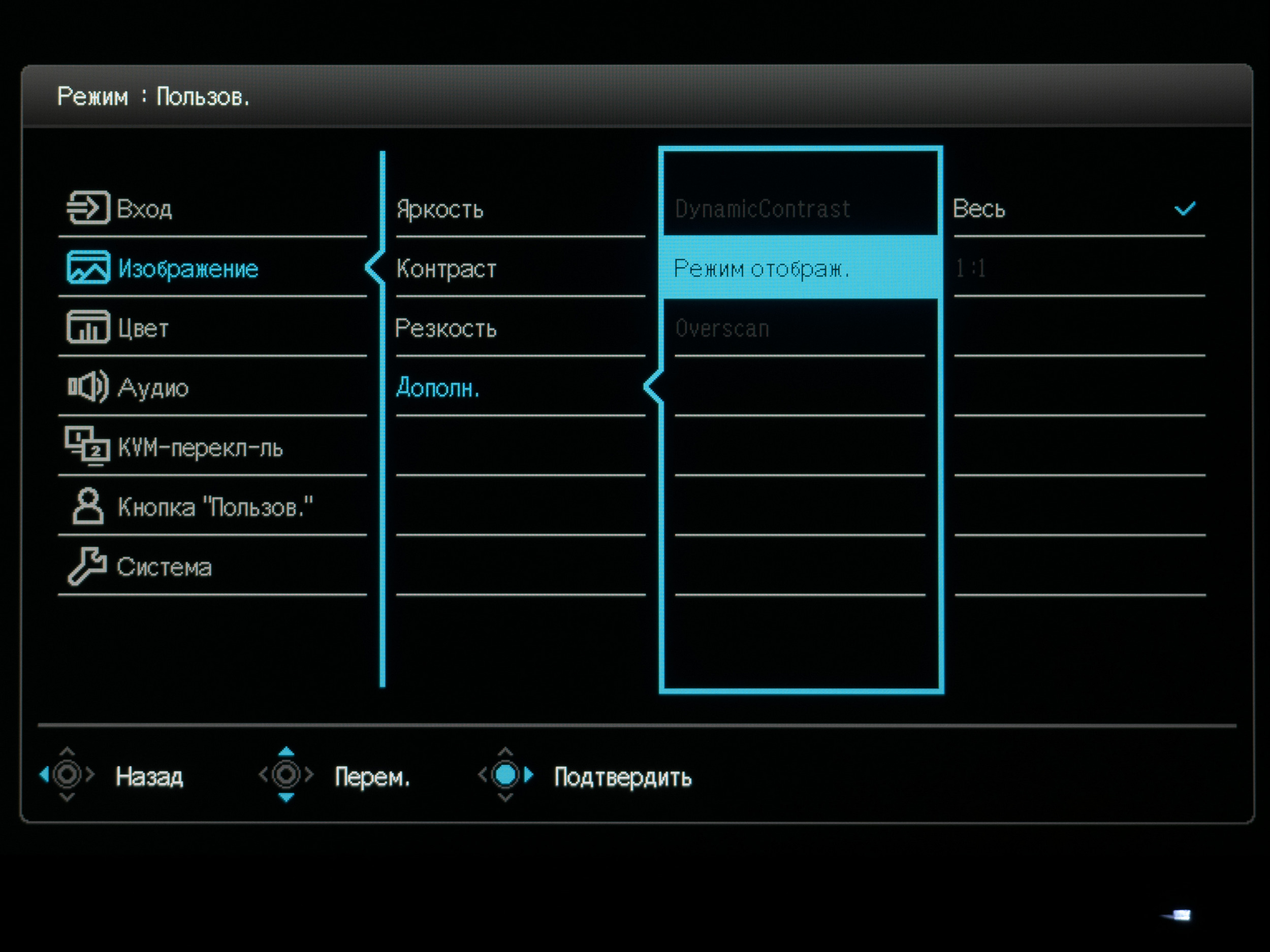 Сделан он качественно и приятен в использовании. С его помощью можно быстро перемещаться по меню, переключать выбранные режимы и интерфейсы, регулировать яркость, контраст или громкость, а также переходить к настройкам функций быстрого доступа.