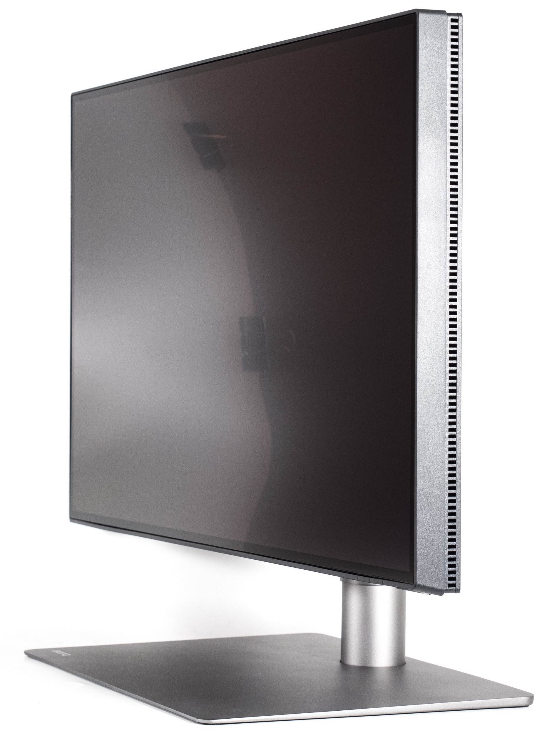 Подставка монитора оптимальна по размерам для используемой диагонали экрана. Её толщина уменьшена, как минимум, вдвое, но на устойчивости и, тем более, тактильных ощущениях это никак не сказалось. Она увесистая, а алюминий приятно холодит руки. Изменению подверглась и центральной колонна.