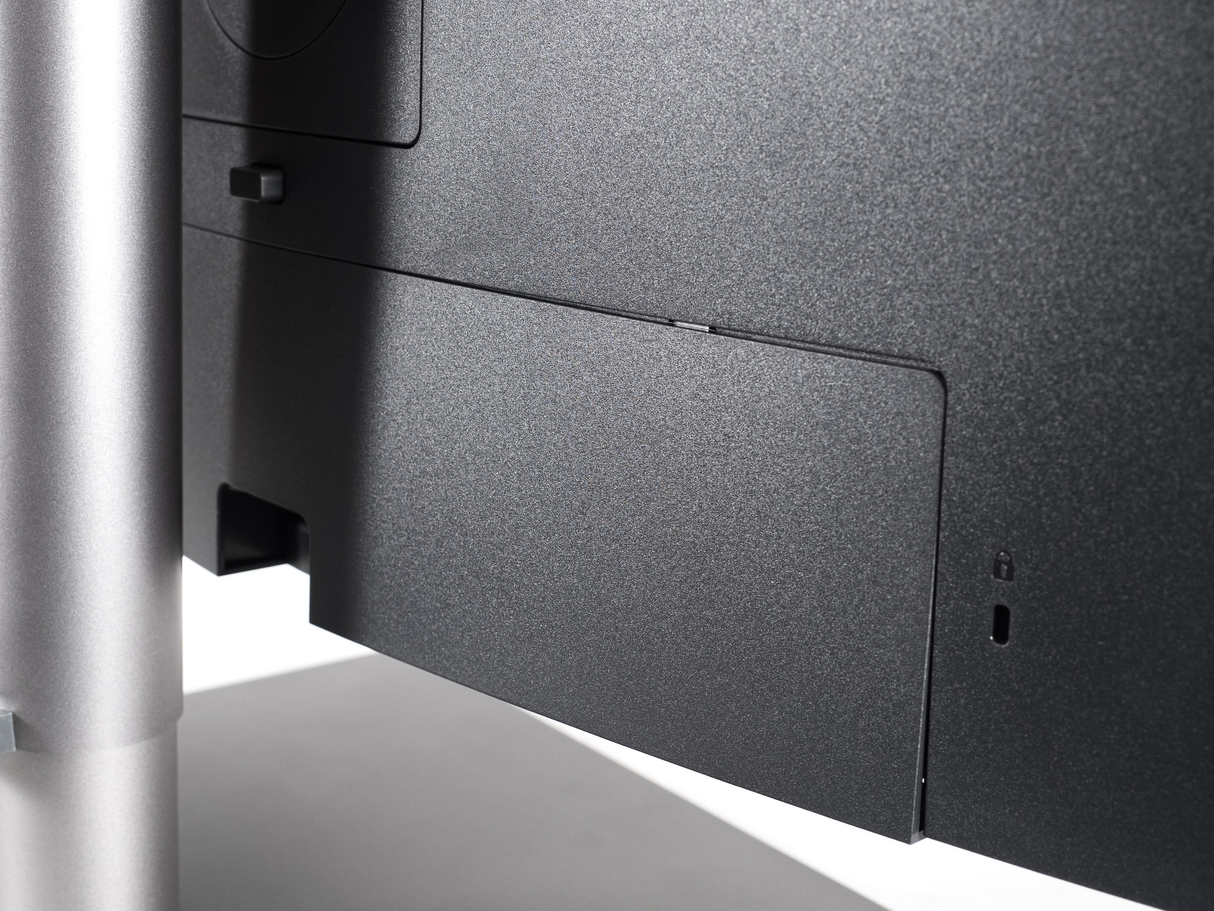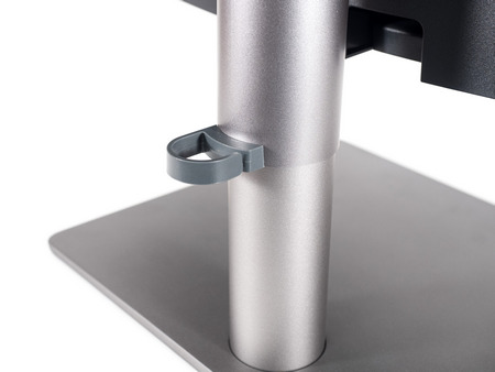 Система прокладки кабелей состоит из пластикового крючка на подвижной части центральной стойки и задней крышки, скрывающей зону интерфейсов подключения.