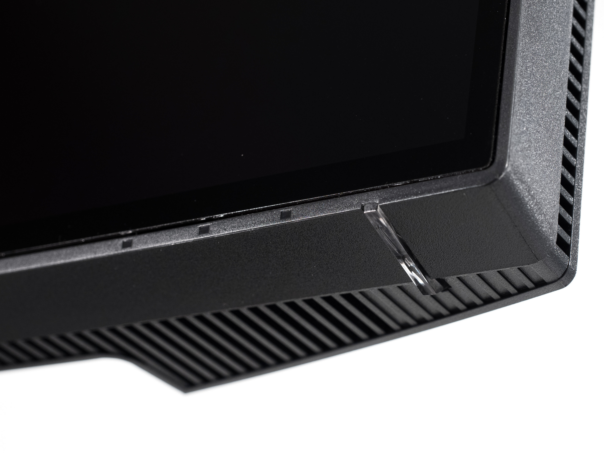 Индикатор питания проходит прозрачной пластиковой вставкой по нижней грани. Дополнительным средством управления монитором служит отдельный блок, подключаемый по mini-USB.