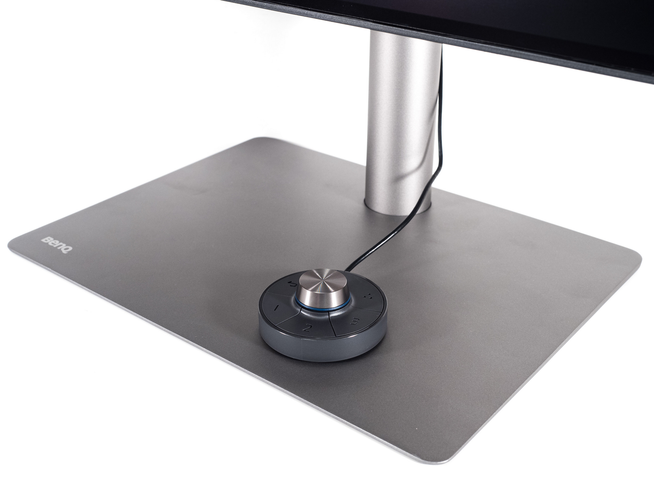 Внешне монитор сильно отличается от прочих решений BenQ, а его эргономичная подставка радует доступностью всех возможных степеней свободны. В PD2725U система управления построена на базе трёх физических клавиш и пятипозиционного джойстика. В дополнении к ним предоставлена возможность использовать для управления выносной блок (Hotkey Puck G2 – второе поколение контроллера) с клавишами быстрого доступа и колесом плавной регулировки, подключаемого через порт mini-USB на корпусе устройства.