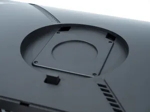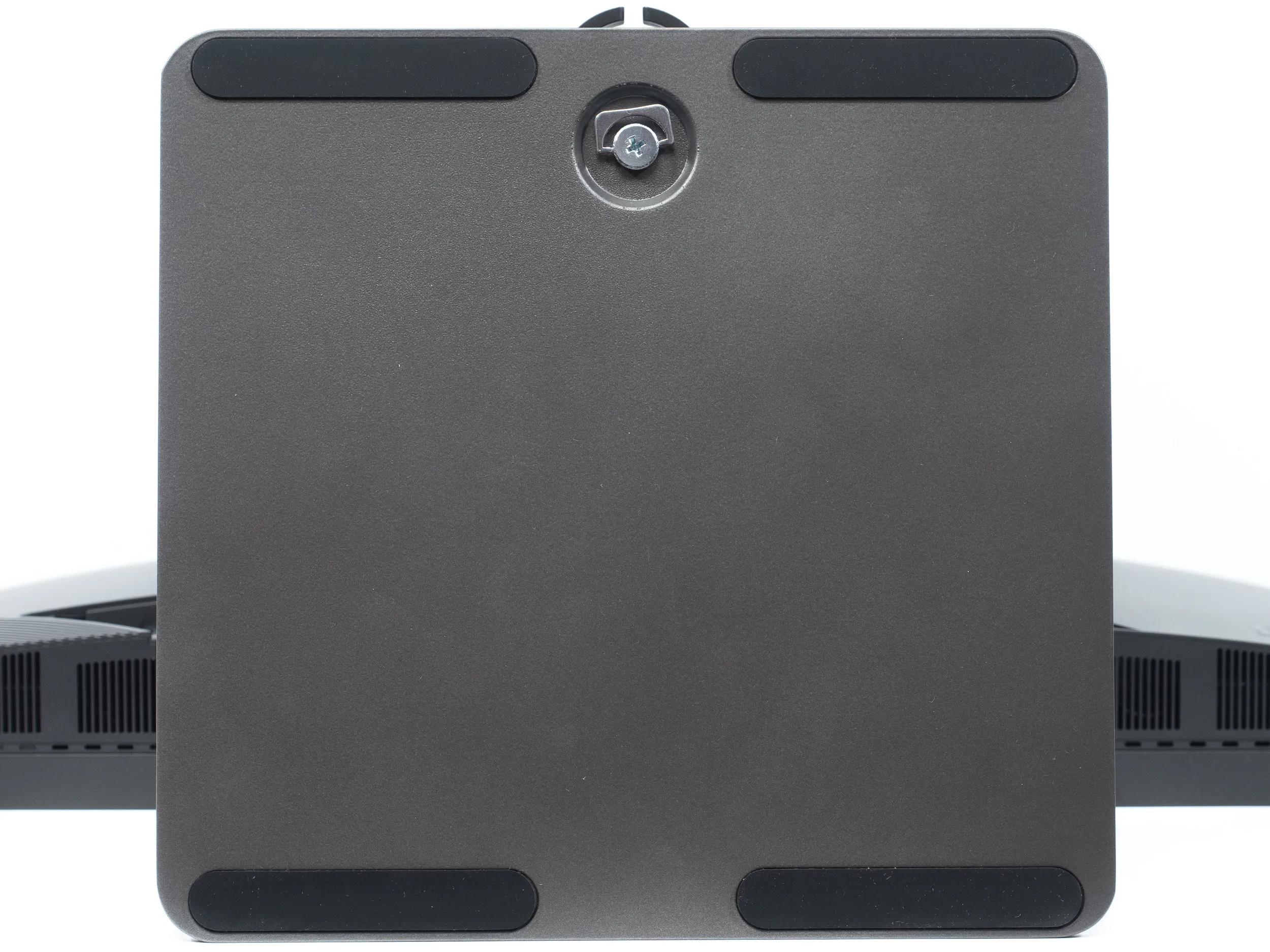 Сама центральная колонна за несколько секунд крепится к корпусу, а для её демонтажа необходимо перевести пластиковый фиксатор-кнопку вверх, после чего перед пользователем предстанет обычная VESA-совместимая площадка стандарта 75 х 75 мм с возможностью крепления сторонних кронштейнов.