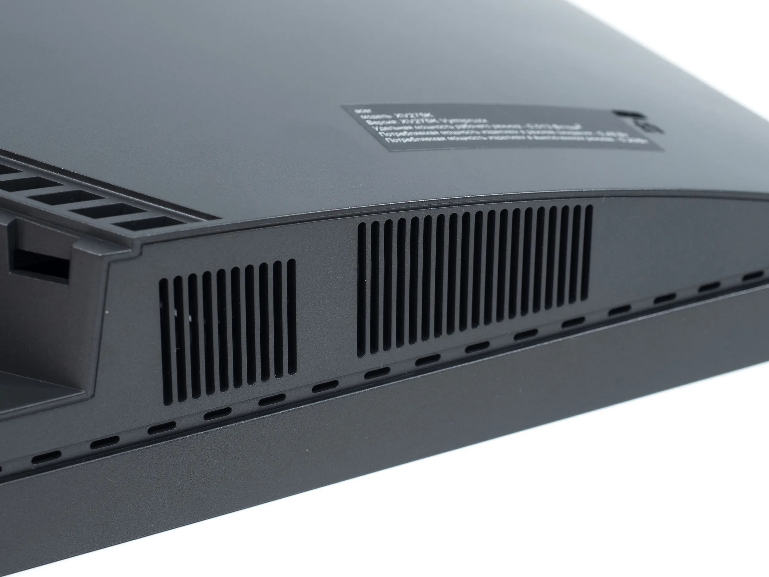Встроенная акустическая система монитора представлена двумя динамиками по 3 Вт каждый, размещёнными за вентиляционными прорезями, на нижней грани корпуса. Качество звука, как и максимальная громкость, порадовать вас не смогут, поэтому серьёзно относиться к подобной системе точно не стоит. Она тут скорее — на всякий случай.