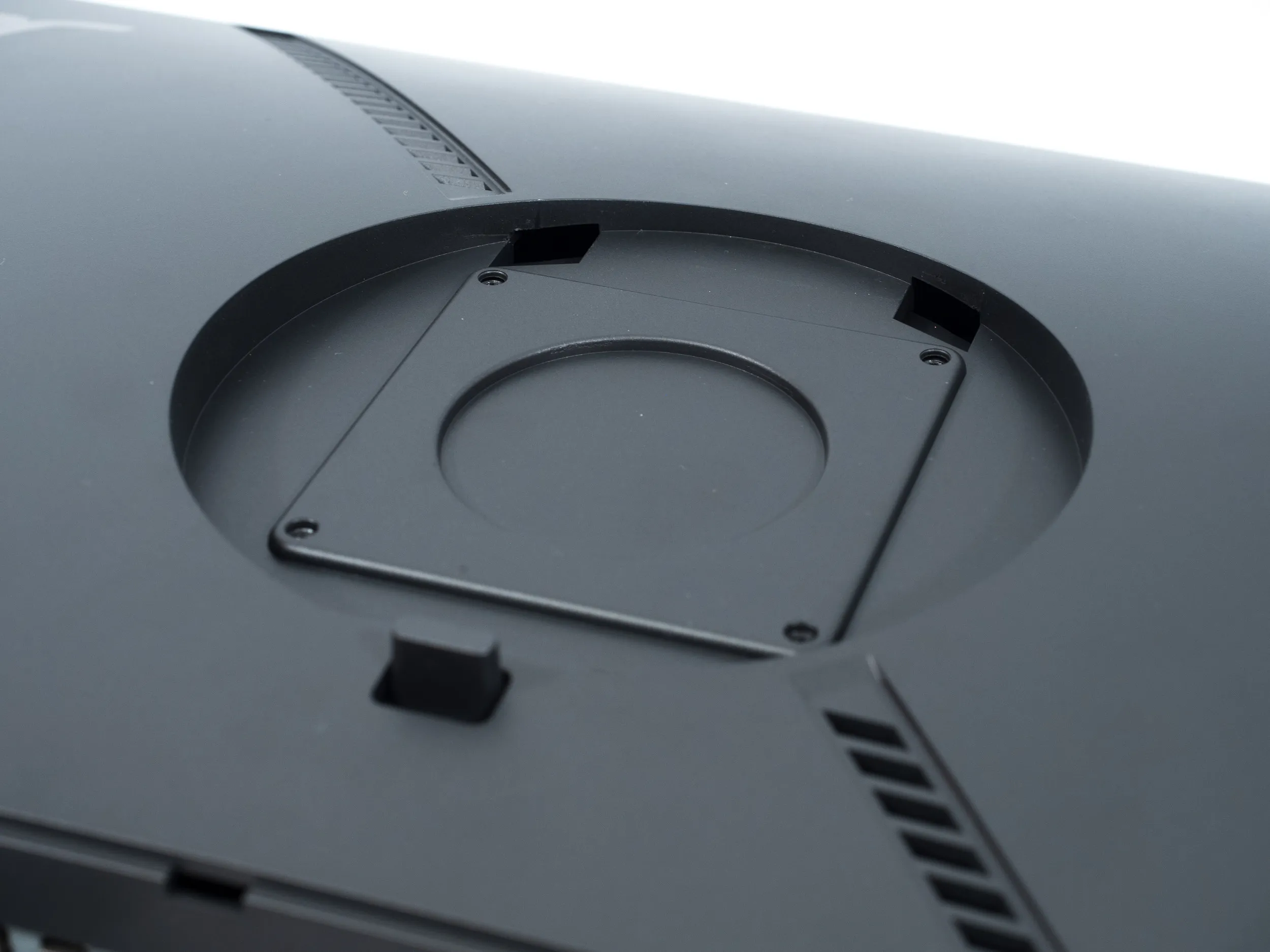 Модель представлена исключительно в тёмно-серой расцветке, с эргономичной подставкой и VESA-совместимым креплением, без необходимости использования переходника.