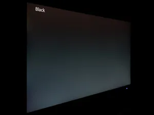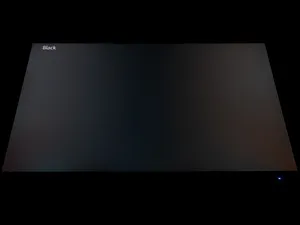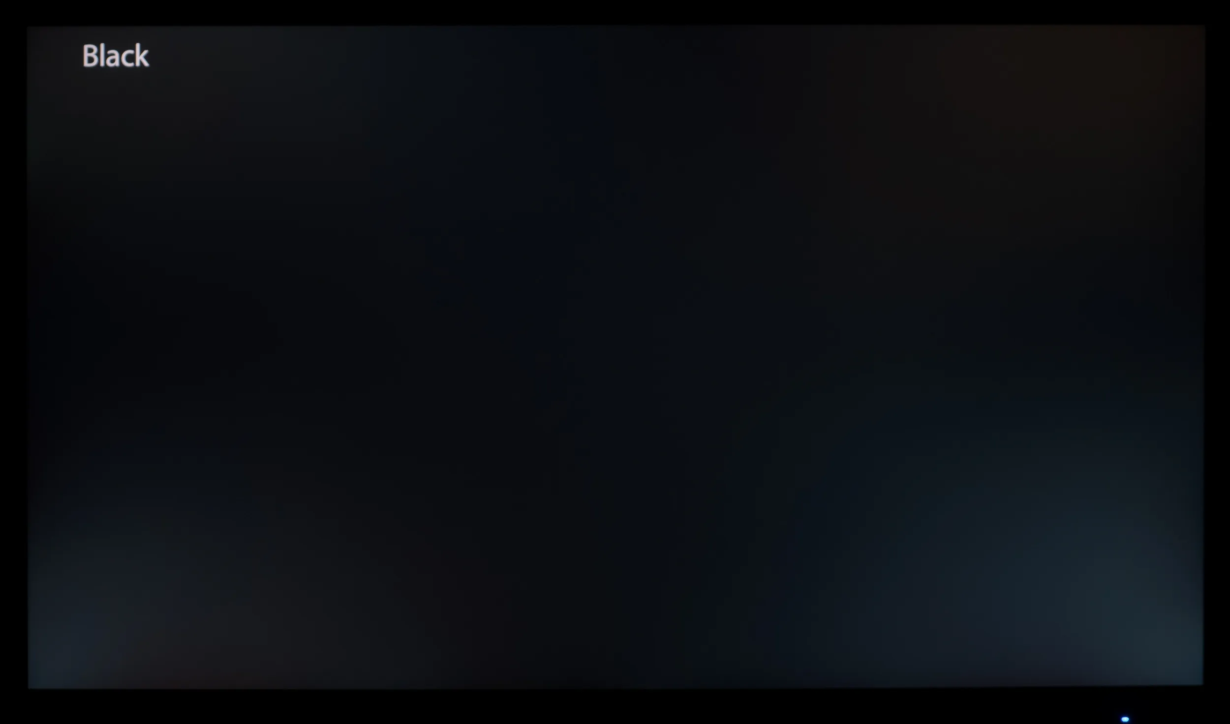 Теперь посмотрим на чёрное поле, оценив его «равномерность» по двум фотографиям, сделанным на разном отдалении от экрана (~70 см и 150 см), чтобы вы могли наглядно оценить влияние уже всем надоевшего Glow-эффекта и узнать реальную равномерность подсветки без его учёта.