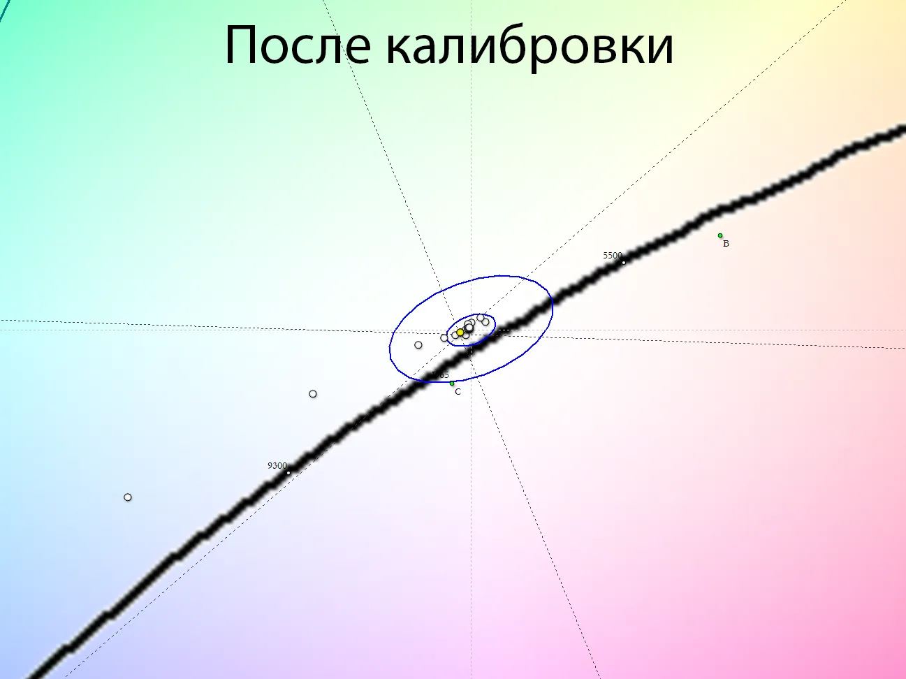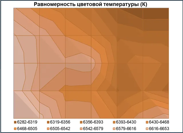 С равномерностью цветовой температуры по полю экрана дела обстоят следующим образом:
