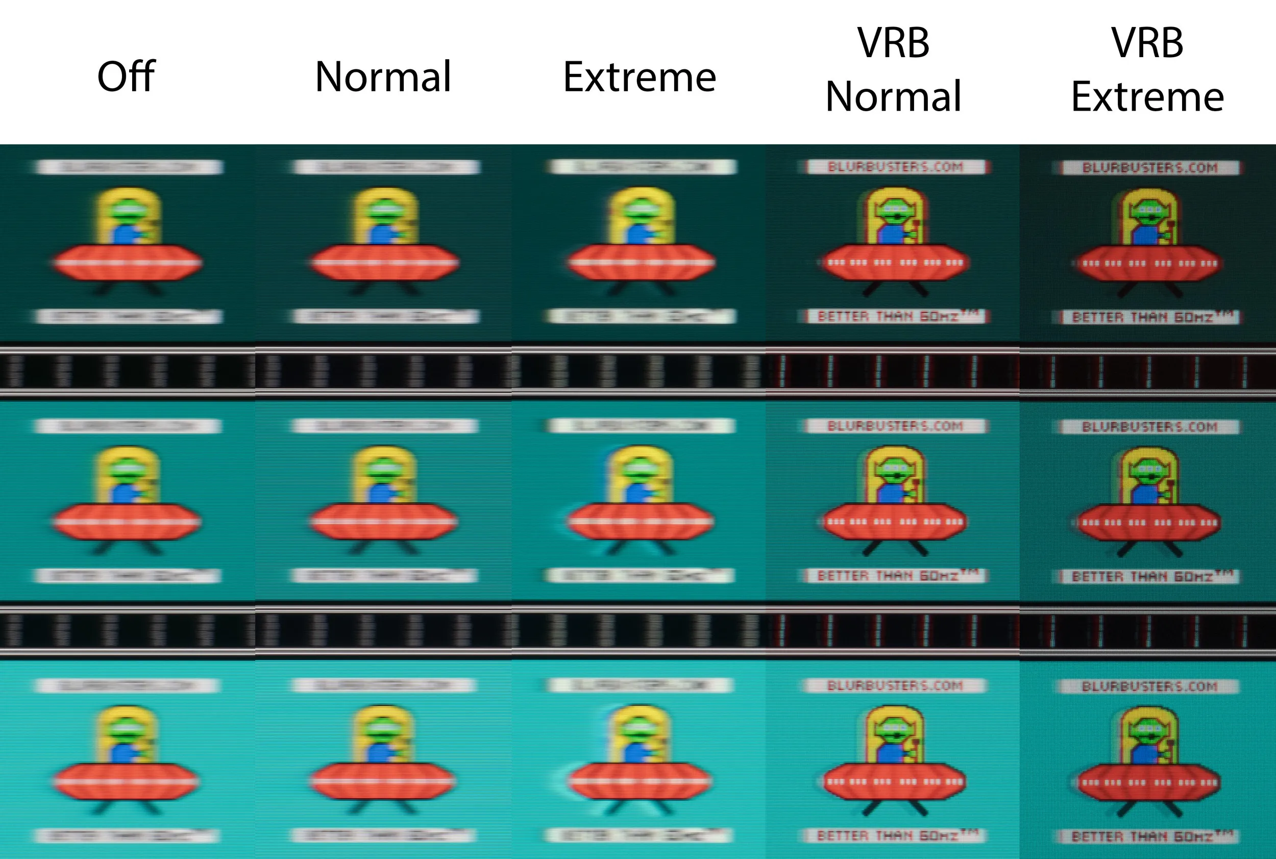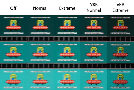 При переходе к Extreme проявляются сильные артефакты, а после дезактивации OD чёткость снижается. Режим вставки «чёрного кадра» VRB/MPRT позволяет увеличить чёткость в разы, но появляется слабый эффект двоения движущегося объекта и, само собой, значительно возрастает нагрузка на глаза.