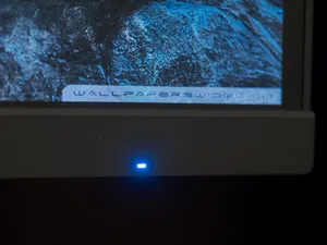 Двухрежимный индикатор питания встроен в переднюю нижнюю рамку и светится оранжевым либо синим. Отключить его или настроить яркость свечения нельзя, но и горит он не сильно и, в целом, не раздражает во время работы.