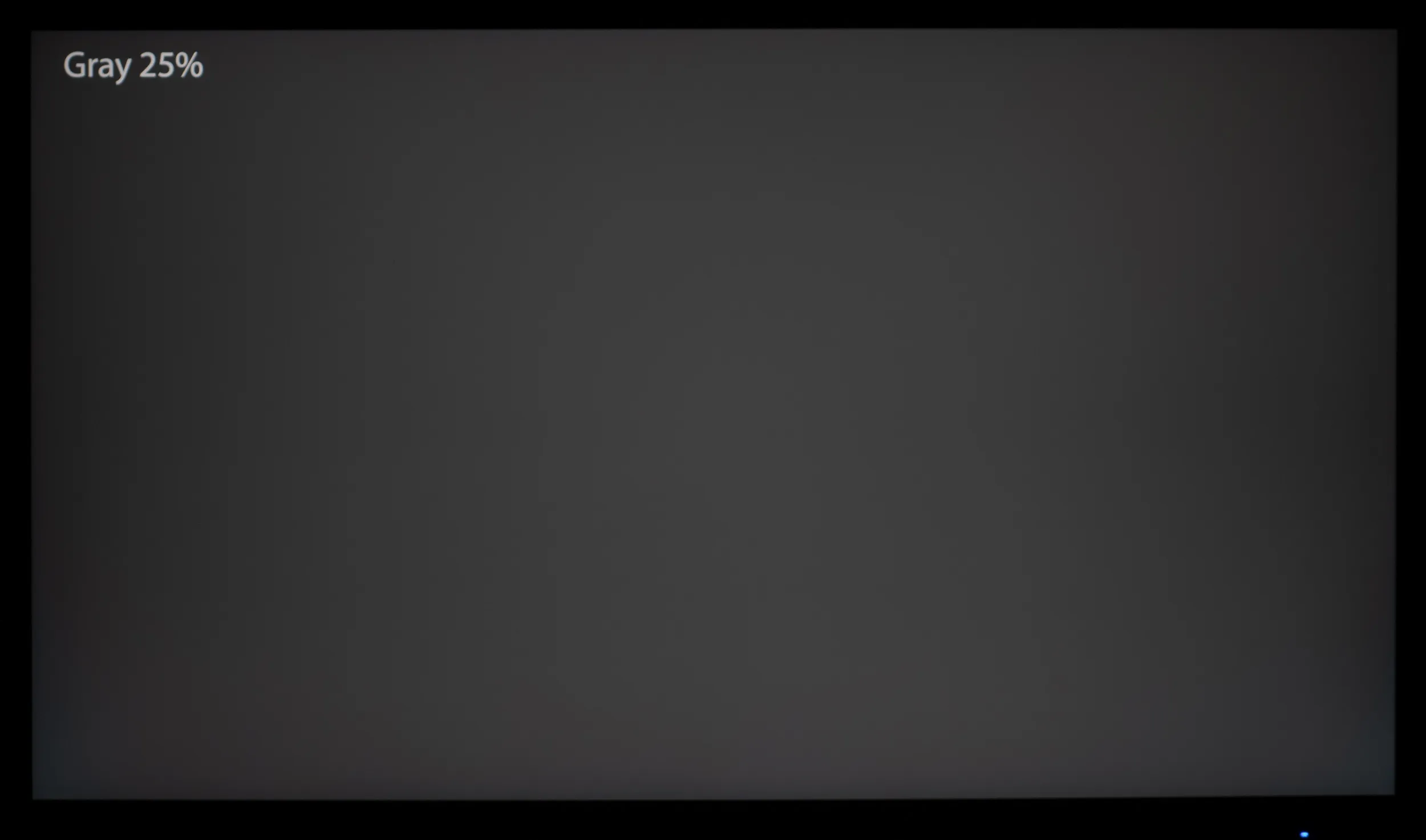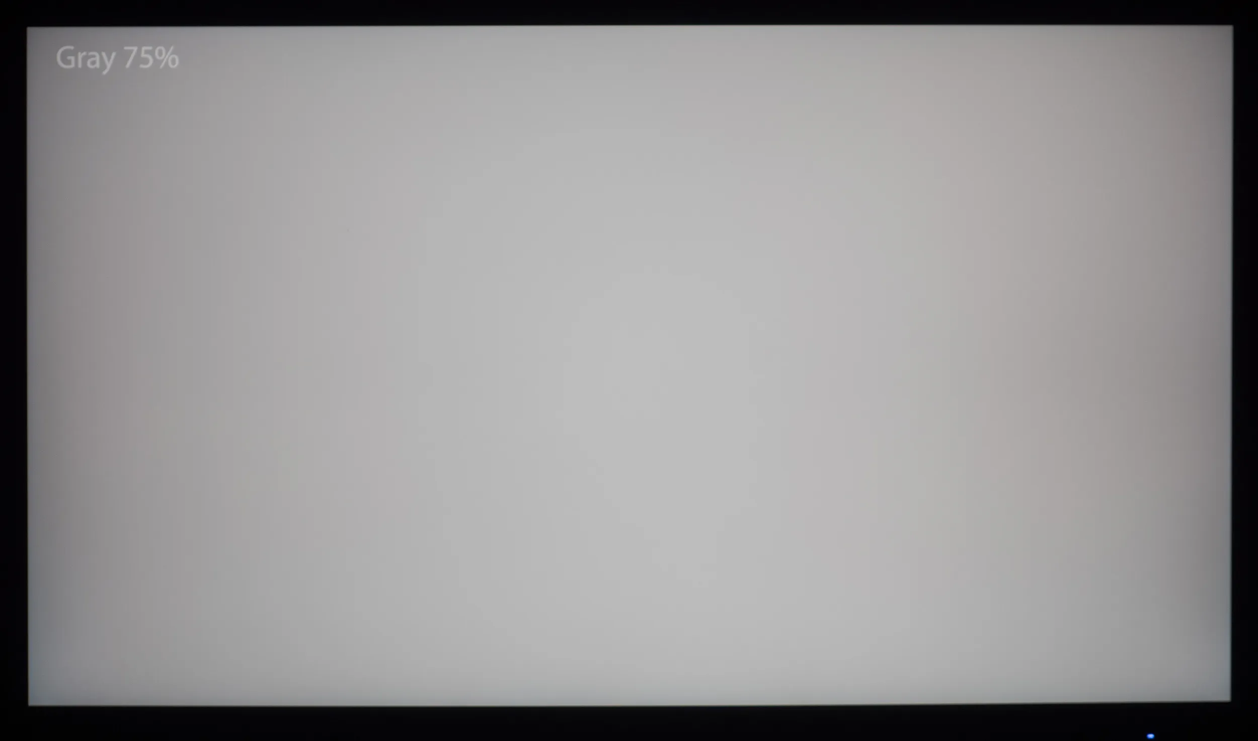 Куда нагляднее проблемы могут продемонстрировать более тёмные серые заливки. У монитора действительно затемнены все края экрана, а вот явных проблем с равномерностью цветовой температуры не выявлено — собственно, как и показали цифры выше. А равномерность ЦТ, как показывает опыт — гораздо более важнее, чем равномерность по яркости.