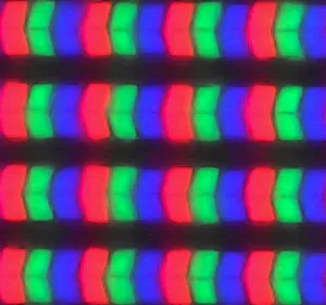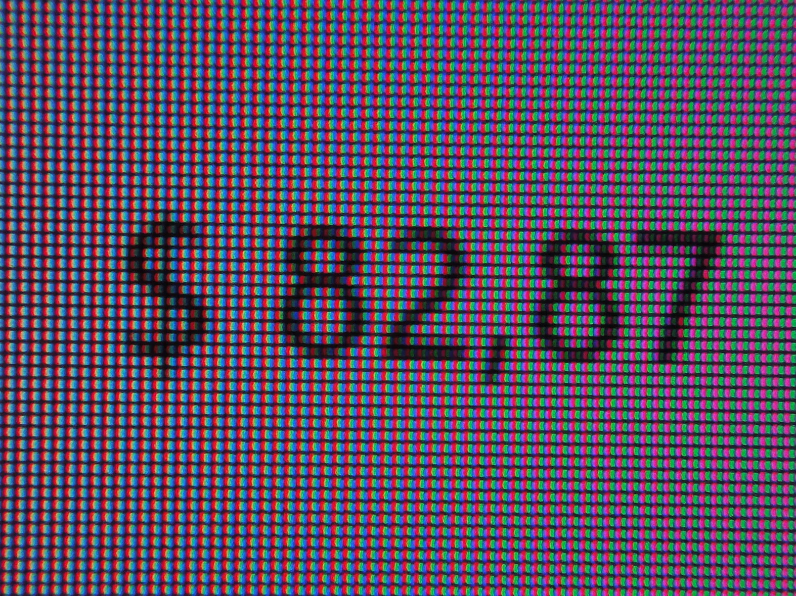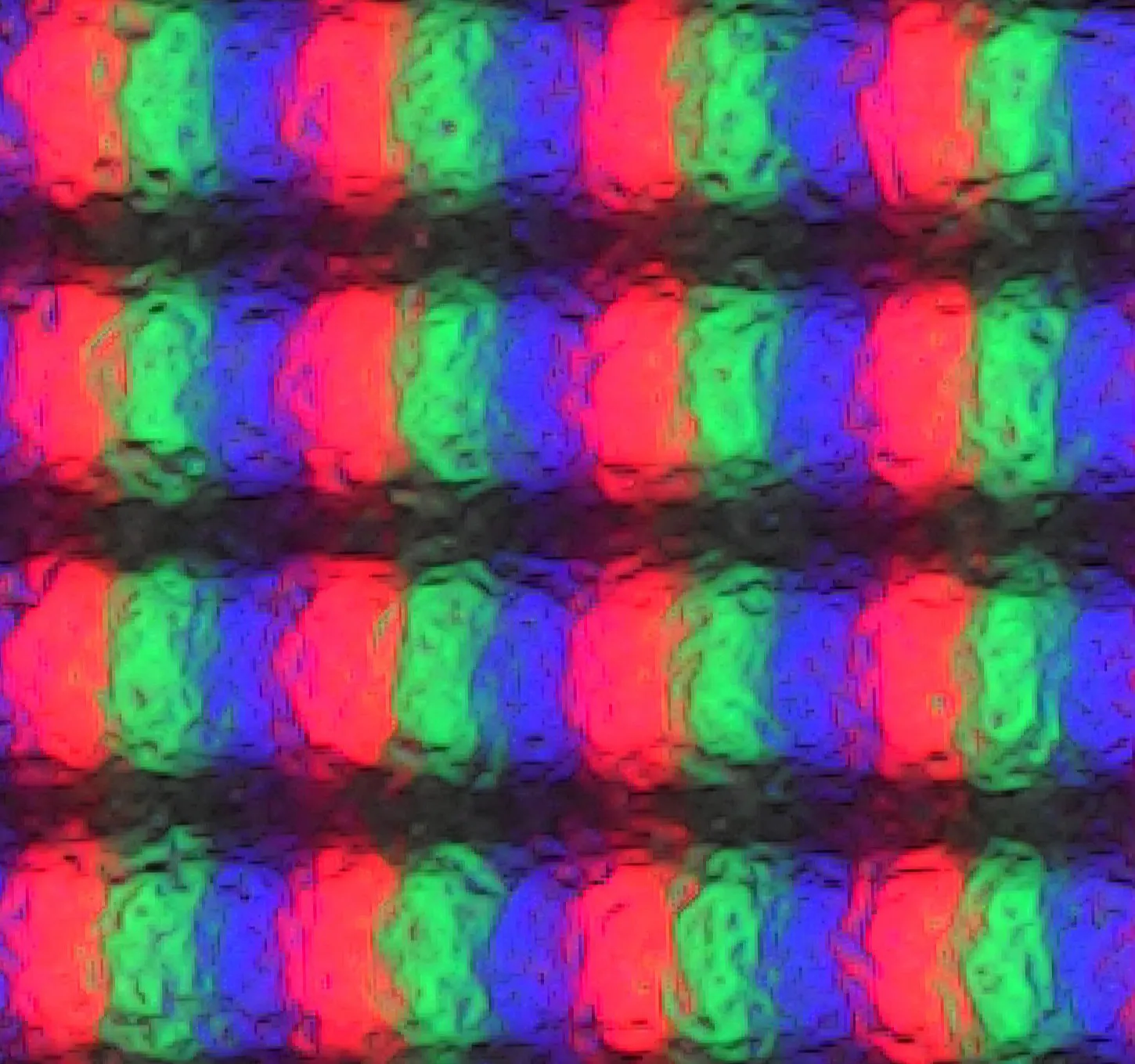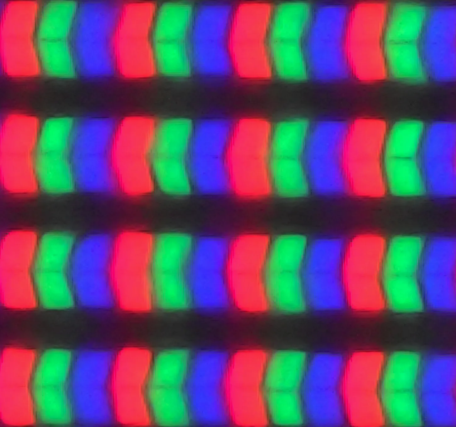 В первую очередь видна классическая RGB-структура с субпикселем особой формы, которая встречается на некоторых панелях от LG Display, но ещё чаще на AUO и BOE.