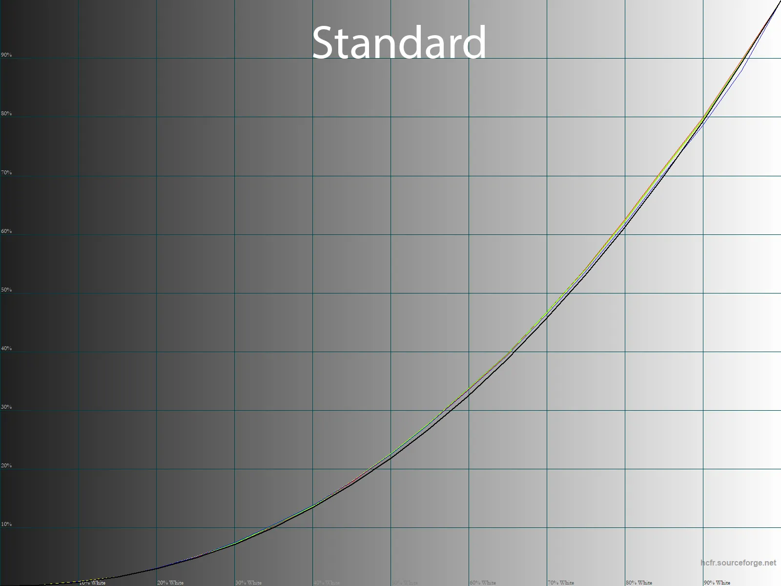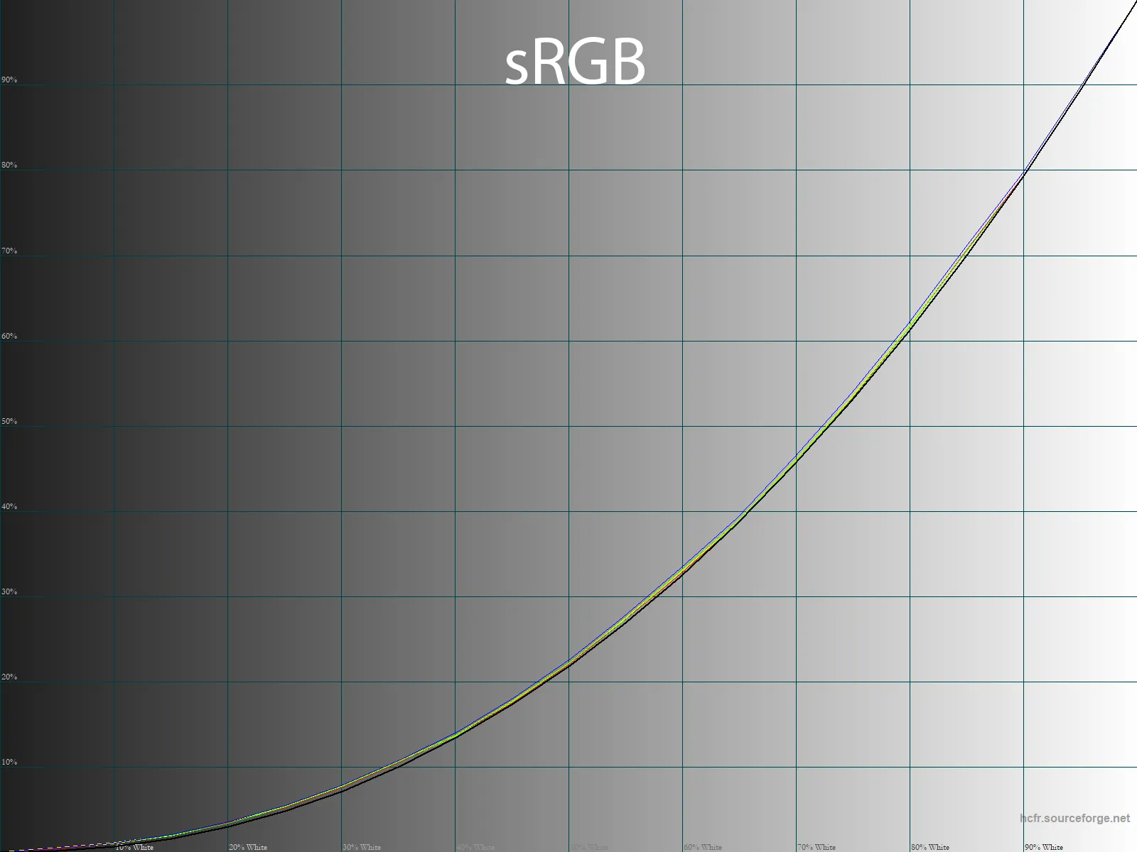 Режим эмуляции sRGB провоцирует необходимый подъём различимости теней, снижение цветовой насыщенности, понижение рабочей яркости. Настройка цветовой температуры в нём сделана лучше, чем при заводских установках, но со стабильностью серого клина дела обстоят не очень, да и точность эмуляции оставляет желать несколько большего.
