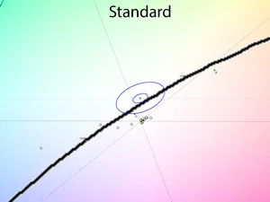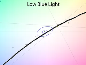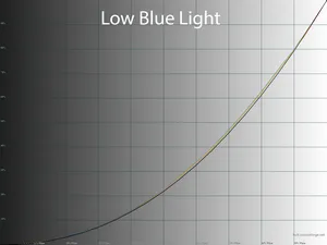 В свою очередь, включение стандартного режима Low Blue Light возвращает гамма-кривые к базовым установкам (как в Standard Mode), а точки серого клина устанавливаются строго на чёрной линии, что свидетельствует об отсутствии паразитных оттенков. Картинка просто «нейтрально тёплая» и не более того. Насыщенность остаётся высокой, яркость регулировать можно без ограничений. Нагрузка на глаза в Low Blue Light снижается, но точно не сильно.