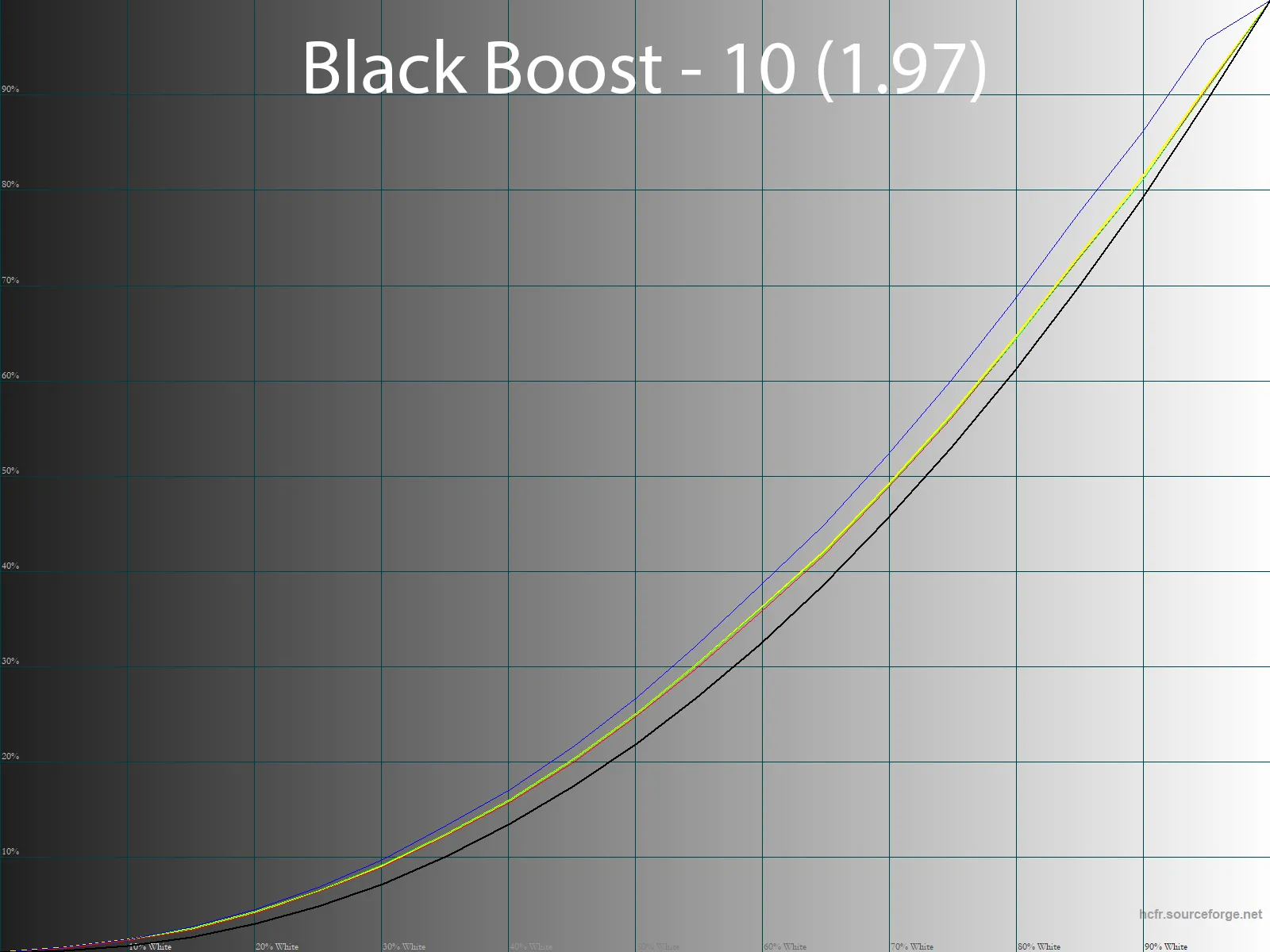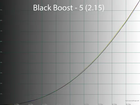 Исследуемый параметр отвечает за регулировку различимости глубоких теней и больше подходит для любителей онлайн-шутеров. В ходе тестирования функции было выявлено, что функция работает вполне корректно, но, пожалуй, исключительно в диапазоне 5-8, когда затрагиваются только необходимые тени. Их корректировка происходит очень плавно, а при достижении 9-10 единиц появляются проблемы с синей гамма-кривой и увеличивается яркость самых светлых полутонов.