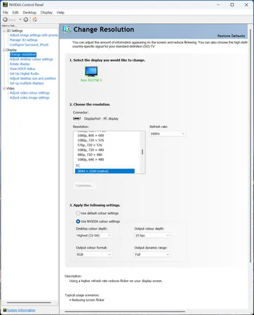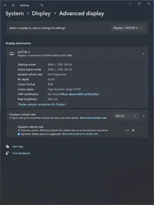В новинке используется скоростная IPS матрица с увеличенной частотой вертикальной развёртки до 160 Гц без необходимости активации дополнительного разгона по частоте. Заявленное время отклика модели составляет привычные 1 мс по методике GtG при стандартных настройках OD. Общая скорость матрицы не удивляет – такой уровень был достигнут производителями ещё в 2019 году, но, с другой стороны — для стандарта 4К и уровня современного «железа» — больше и не требуется.