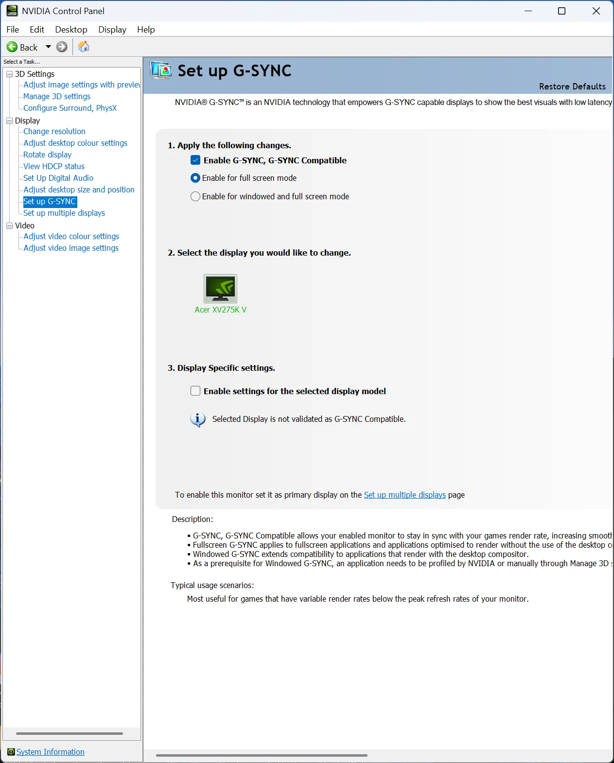 Отдельно отметим, что монитор Acer Nitro XV275KV официально поддерживает VRR-системы. Есть поддержка открытого Adaptive-Sync и сертификат соответствия AMD FreeSync Premium. NVIDIA G-Sync в режиме Compatible поддерживается без официального сертификата. Работа последней была подтверждена нами при фактическом тестировании новинки. Проблем не возникло, всё работает, но исключительно в диапазоне 48-160 Гц.