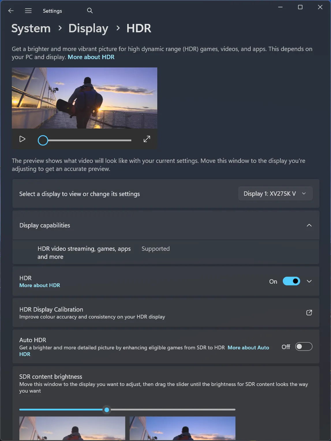 В режиме HDR возможности монитора не расширяются, диапазон яркости в условиях неизменной температуры точки белого сохраняется на том же уровне, но регулировка яркости вручную дезактивируется.