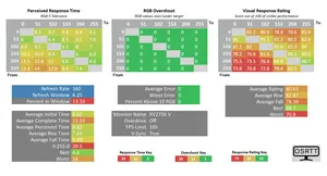 Для регулировки скорости отклика в модели применена стандартная технология разгона времени отклика Overdrive с тремя степенями воздействия (включая вариант Off — выключено). Также у монитора есть технология вставки «чёрного кадра» (VRB, она же MPRT в общем понимании) первого поколения, без поддержки одновременной работы с системами VRR и с возможностью выбора среди двух режимов «глубины» работы функции — Normal и более тёмный Extreme.