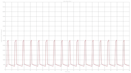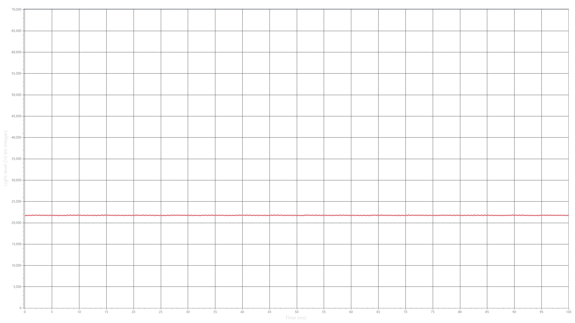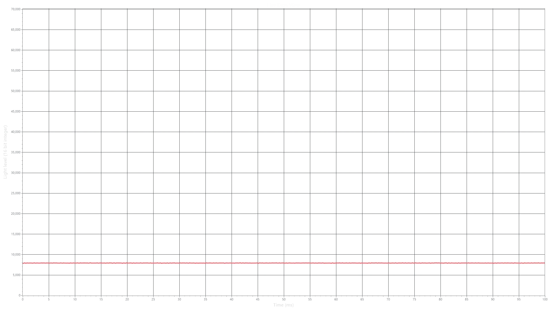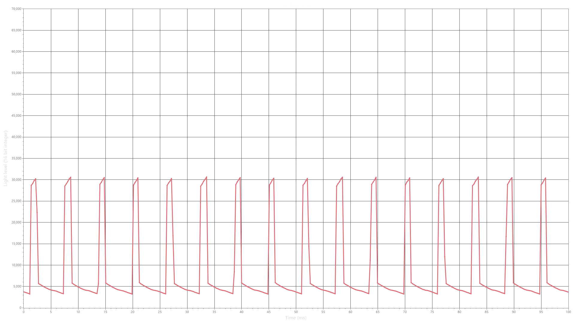 Если же активировать режим VRB, то подсветка будет мерцать на уровне частоты вертикальной развёртки монитора. Выше предоставлен пример замера на частоте 160 Гц при измерении белого поля. На участке в 100 мс отчётливо видно 16 выключений подсветки за данный период. Такой вариант в обязательном порядке приведёт к визуальным улучшениям на экране (особенно в играх), но и нагрузка на глаза и голову возрастает во много раз. Выбор тут только за вами.