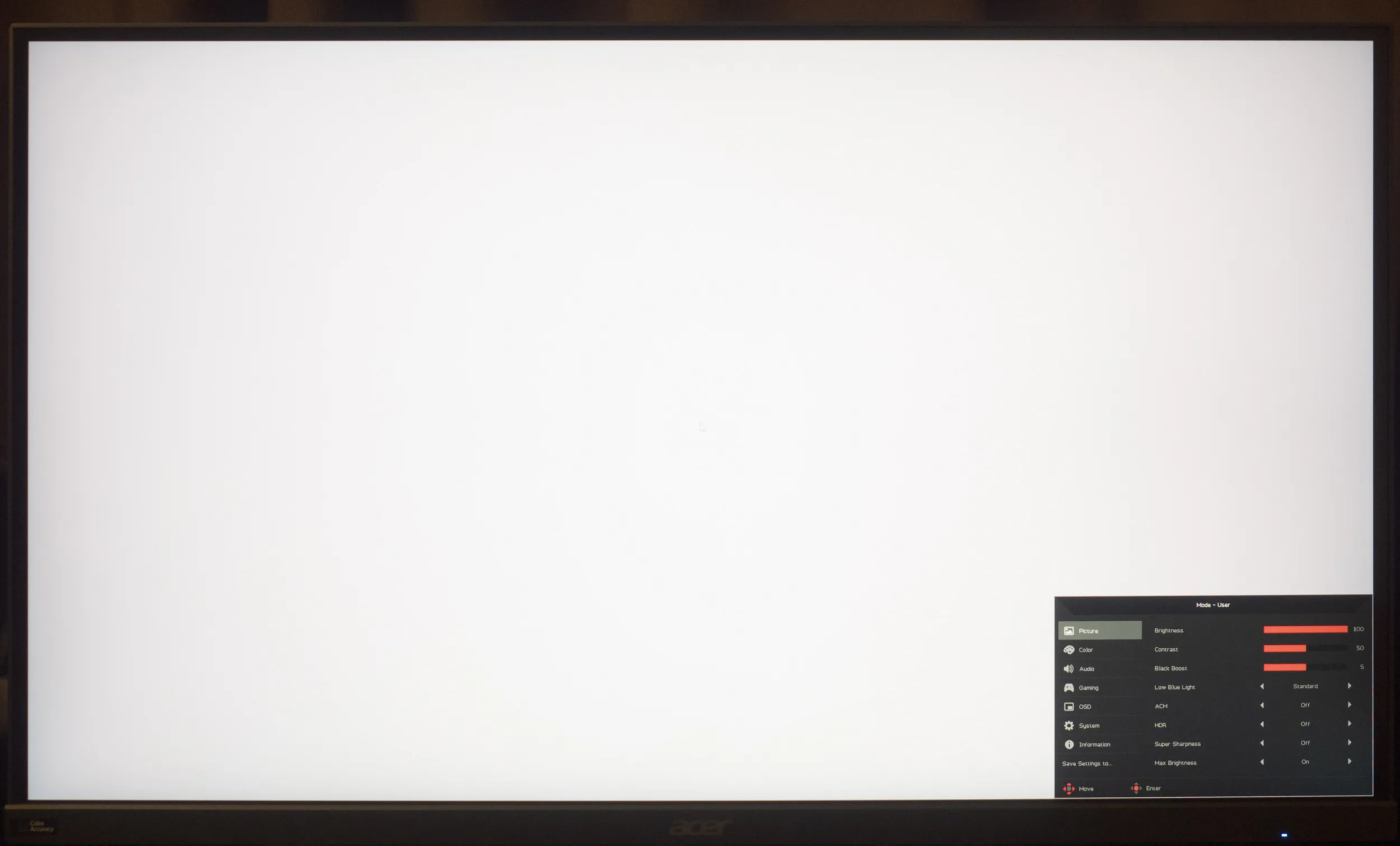 На фоне некоторых предшественников из линейки самой Acer, герой обзора стал чуть медленней по реальной скорости отклика, опорные цвета выставлены немного странным образом, что мешает выполнению точной эмуляции sRGB, но зато в остальном настройка выполнена очень хорошо, регулировка яркости стала плавной, равномерность подсветки на светлом — хороша, а дизайн и качество материалов и сборки стали очевидно на уровень выше, чем были раньше.