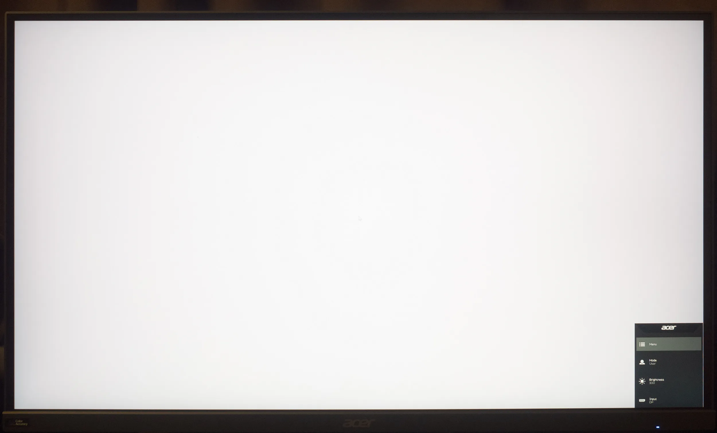 При сильном отдалении от экрана Glow полностью исчезает (вторая фотография выше) и мы становимся свидетелями порядка 8-10 проблемных участков — засветок/пятен с различными паразитными оттенками. Результат ниже среднего, но сделаем смелое предположение, что можно найти более равномерный экземпляр Nitro XV272KV. Будем в это верить…