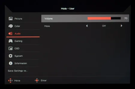 Третий раздел Audio предлагает исключительно регулировку уровня громкости и его выключение (Mute).
