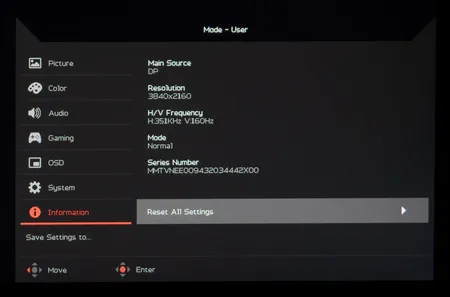 Мы не смогли получить доступ к сервисному меню монитора, но исходя из результатов тестирования можно сделать некоторые очевидные выводы — панель обходится без «квантовых точек» и это точно не Nano IPS от LG Display. Есть предположение, что производитель воспользовался Fast IPS матрицей от китайской компании BOE либо одной из модификаций панелей подконтрольной компании AU Optronics.