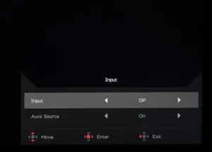 Управление монитором осуществляется с помощью единственного 5-позиционного джойстика, расположенного в задней части корпуса справа. Он же выполняет роль кнопки включения (короткое нажатие) и выключения (удержание на 2-3 секунды).
