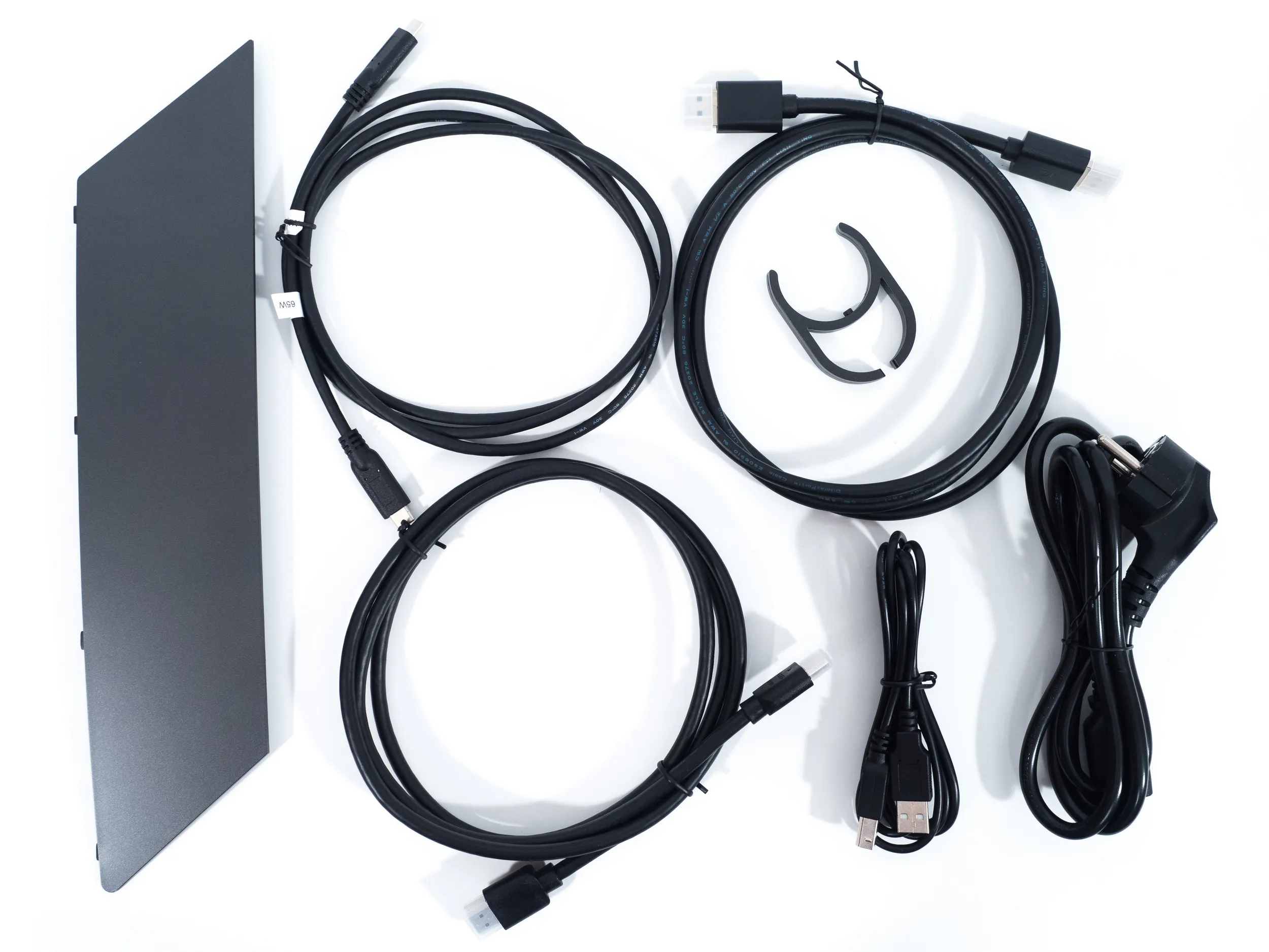 В комплекте есть всё необходимое для начала беспроблемной работы и получения максимально возможных 160 Гц при подключении по любому из доступных интерфейсов, в том числе Type-C, как к Windows-, так и MacOS-ноутбукам, но исключительно при соответствии GPU необходимым требованиям по пропускной способности.