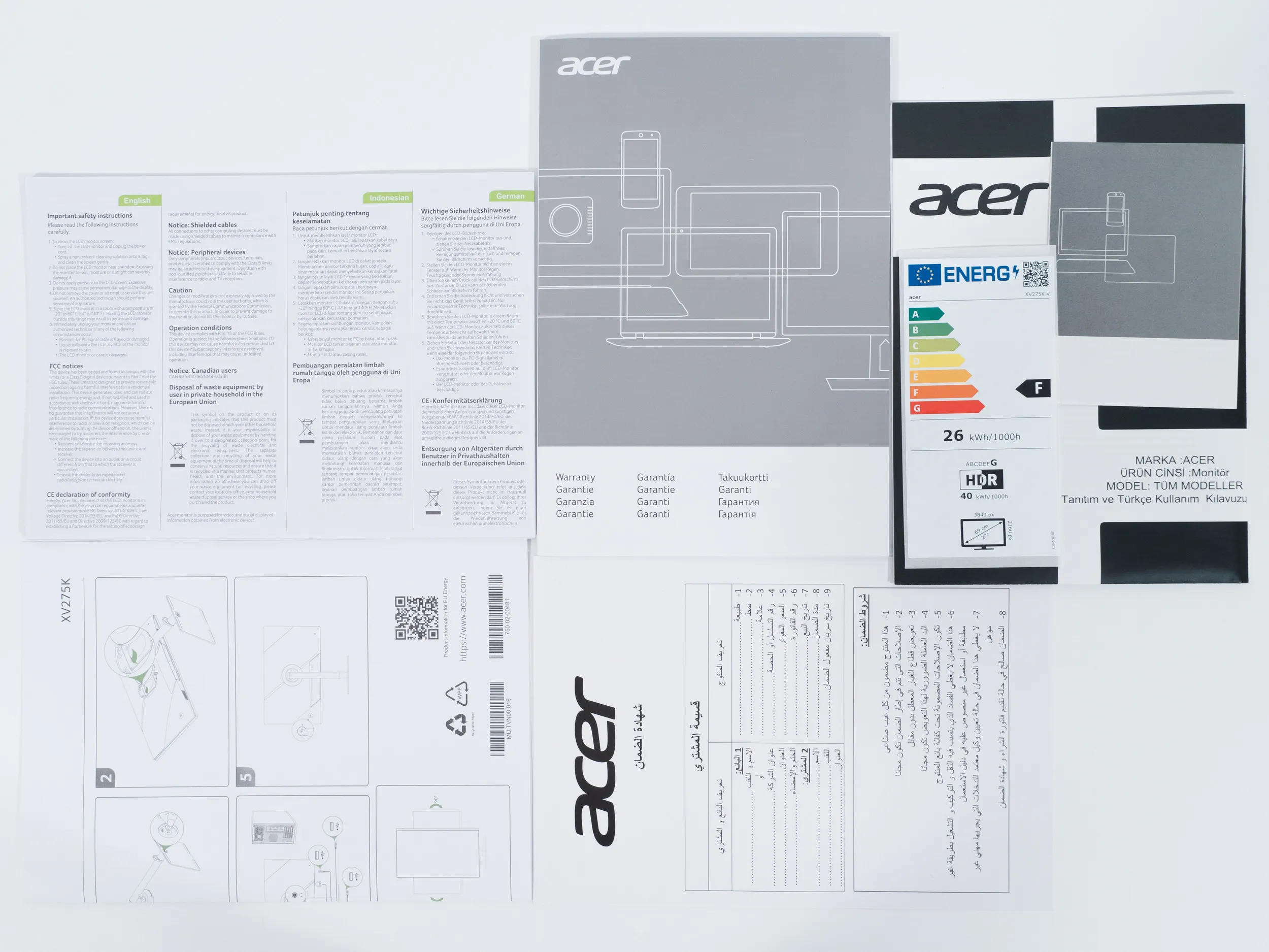 Комплект поставки Acer Nitro XV275KV включает в себя следующее: