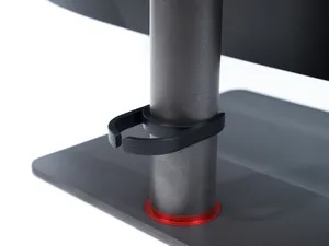 В качестве элемента системы прокладки кабелей производитель предлагает воспользоваться пластиковым держателем из комплекта поставки. Он прикрепляется исключительно на одной высоте, для чего в центральной стойке сделана прорезь.