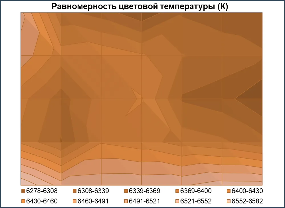 Теперь перейдём к рассмотрению равномерности цветовой температуры на всей площади экрана.