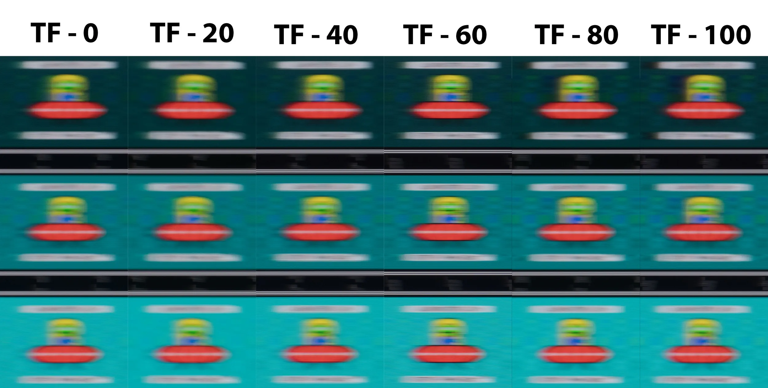 Давайте посмотрим на полученные результаты при максимально возможной частоте вертикальной развёртки с разными настройками OD: