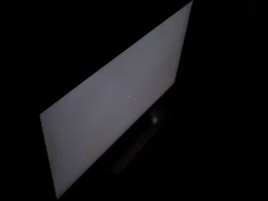 При сильном отдалении от экрана Glow полностью исчезает, но мы становимся свидетелями дефектов подсветки и некой неоднородности рабочего поля, заметной исключительно на чёрной заливке. Результат достаточно низкий и разочаровывающий. От профессиональной модели мы хотели бы видеть совсем иное.
