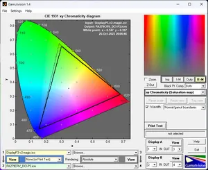 Все значения были получены при профилировании в среде Argyll CMS, с отсечением цветов и оттенков, выходящих за границы референсных значений. Исходя из полученных результатов следует отметить, что изученная новинка отлично подойдёт для работы в любом из трёх основных цветовых пространств. Всё что производитель обещал – почти всё сдержал. Не хватает лишь 3 % для DCI-P3, но к этому мы уже привыкли.