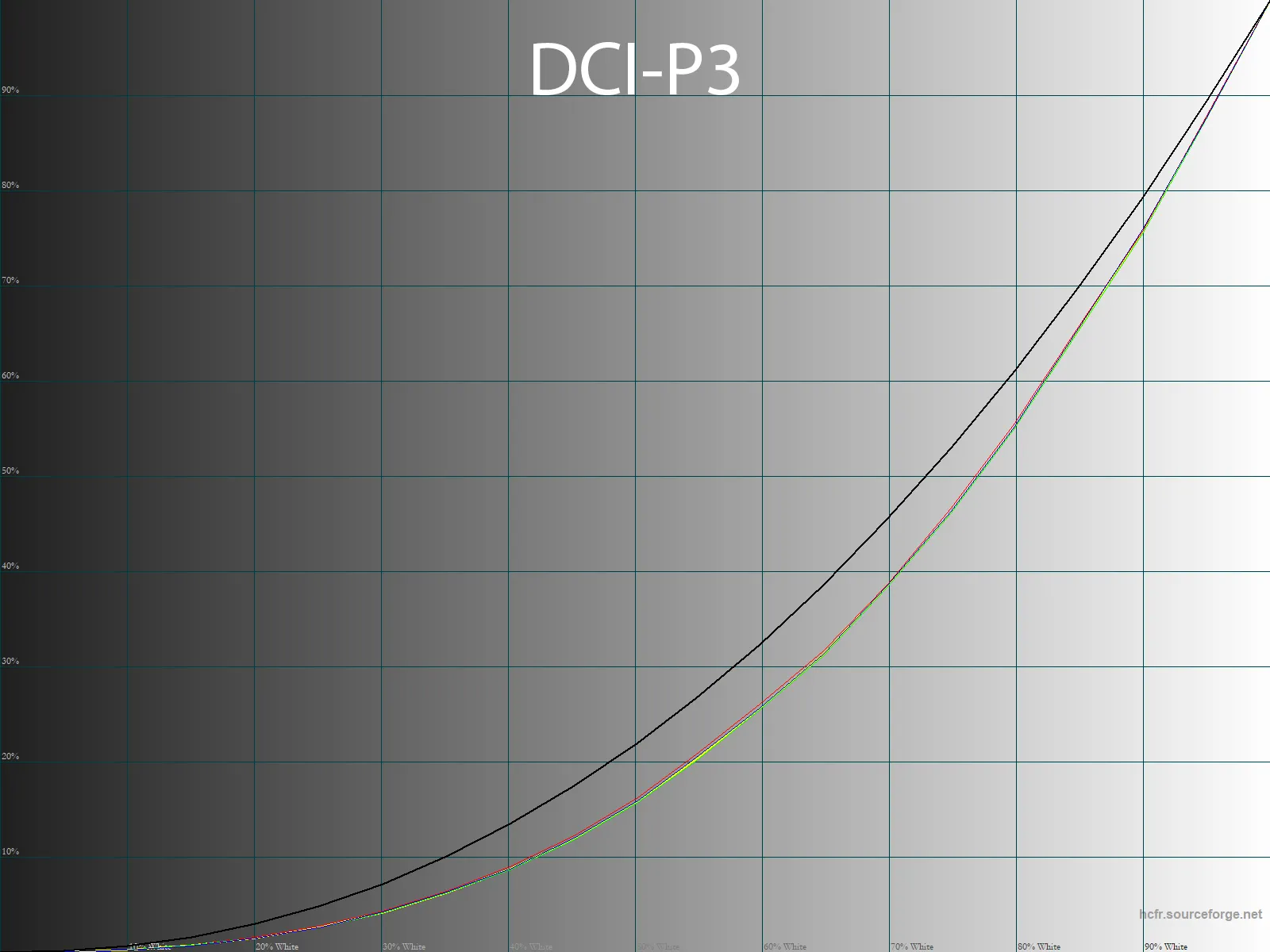 Монитор демонстрирует высокую точность установки точки белого в большинстве изученных режимов, и только в BLF-Max и настоящем DCI-P3 выходит за все допустимые границы, что было вполне ожидаемо.