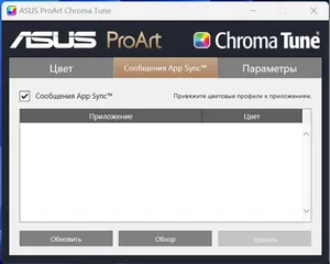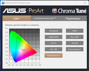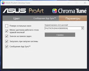 В качестве дополнительного средства управления монитором компания ASUS предлагает установить новую утилиту под название ASUS ProArt Chroma Tune. С нашей точки зрения, она выглядит крайне просто и не соответствует уровню дисплея.