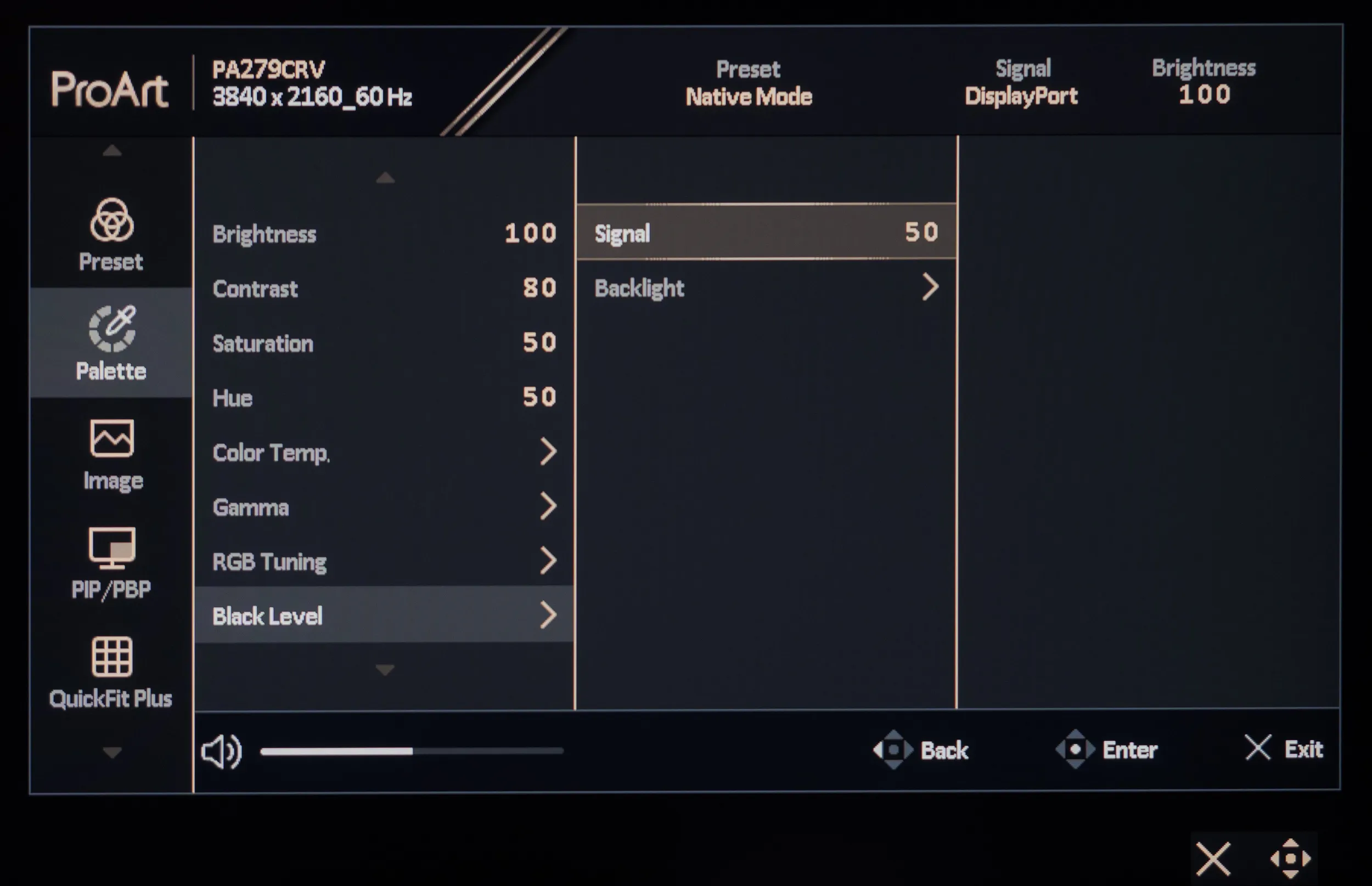 У новинки ASUS отсутствует датчик внешней освещённости для автоматической регулировки яркости, а в меню есть несколько дополнительных параметров, напрямую влияющих на точность цветопередачи и качество картинки в целом. В случае с PA279CRV мы решили посмотреть на влияние функций Black Level и классической Gamma.